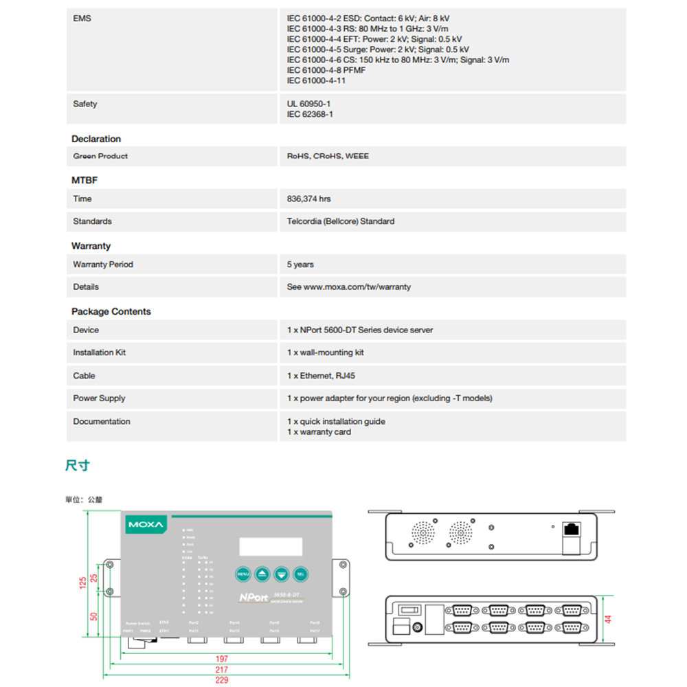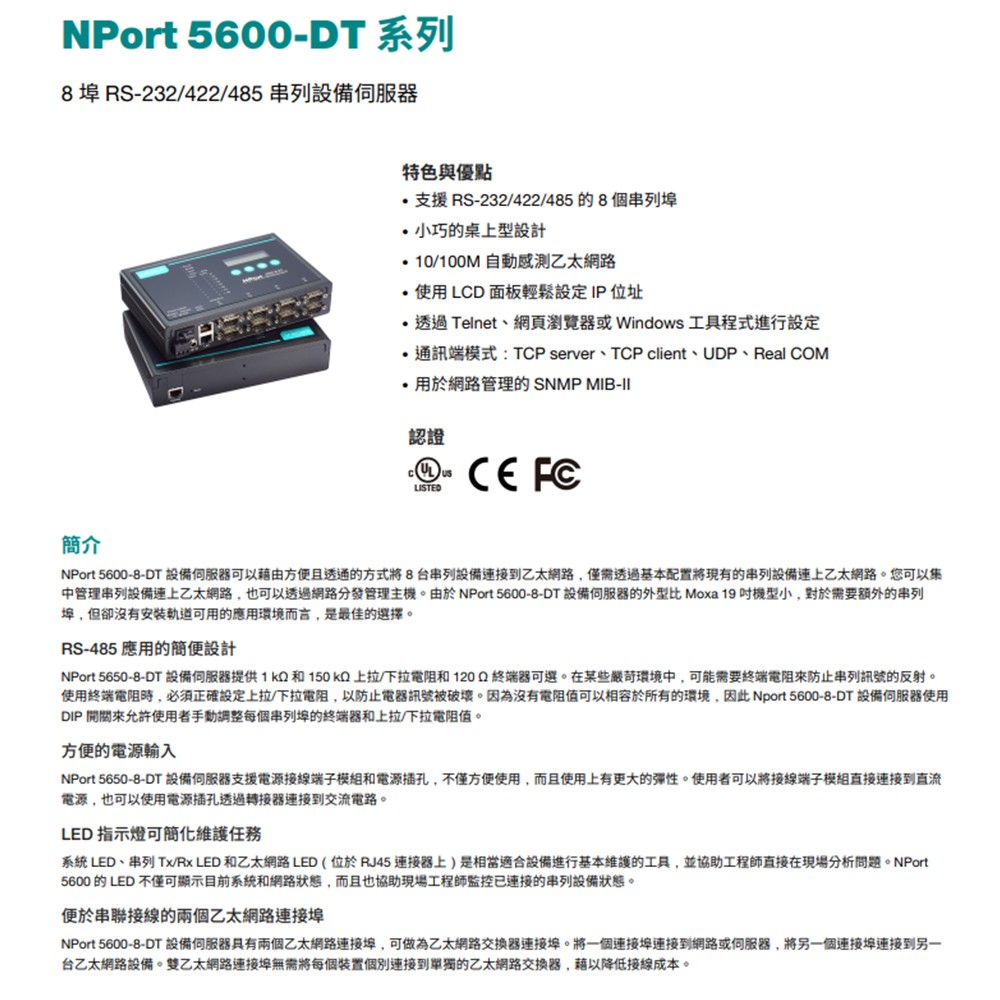 昌運監視器 MOXA NPORT 5610-8-DT 8埠RS-232串列設備伺服器