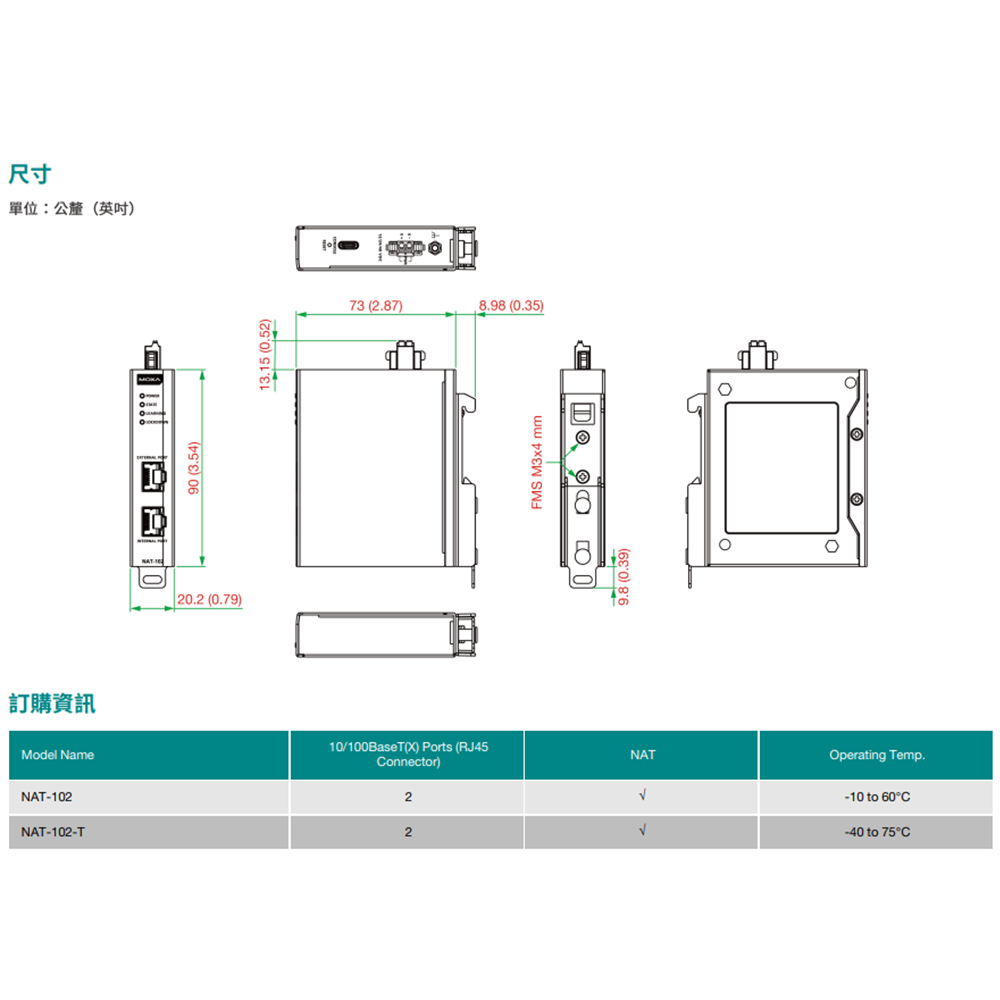 昌運監視器 MOXA NAT-102 2埠工業網路位址轉譯(NAT)裝置
