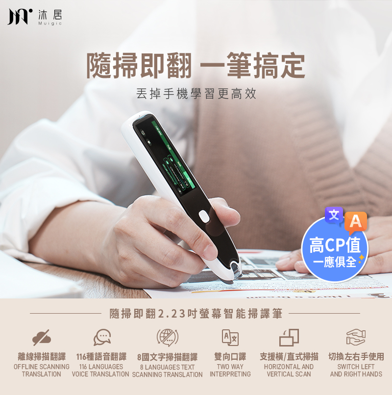 【muigic沐居】隨掃即翻2.23吋螢幕智能掃譯筆 F00
