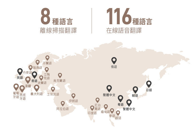支援掃描翻譯線上116種/離線8種
