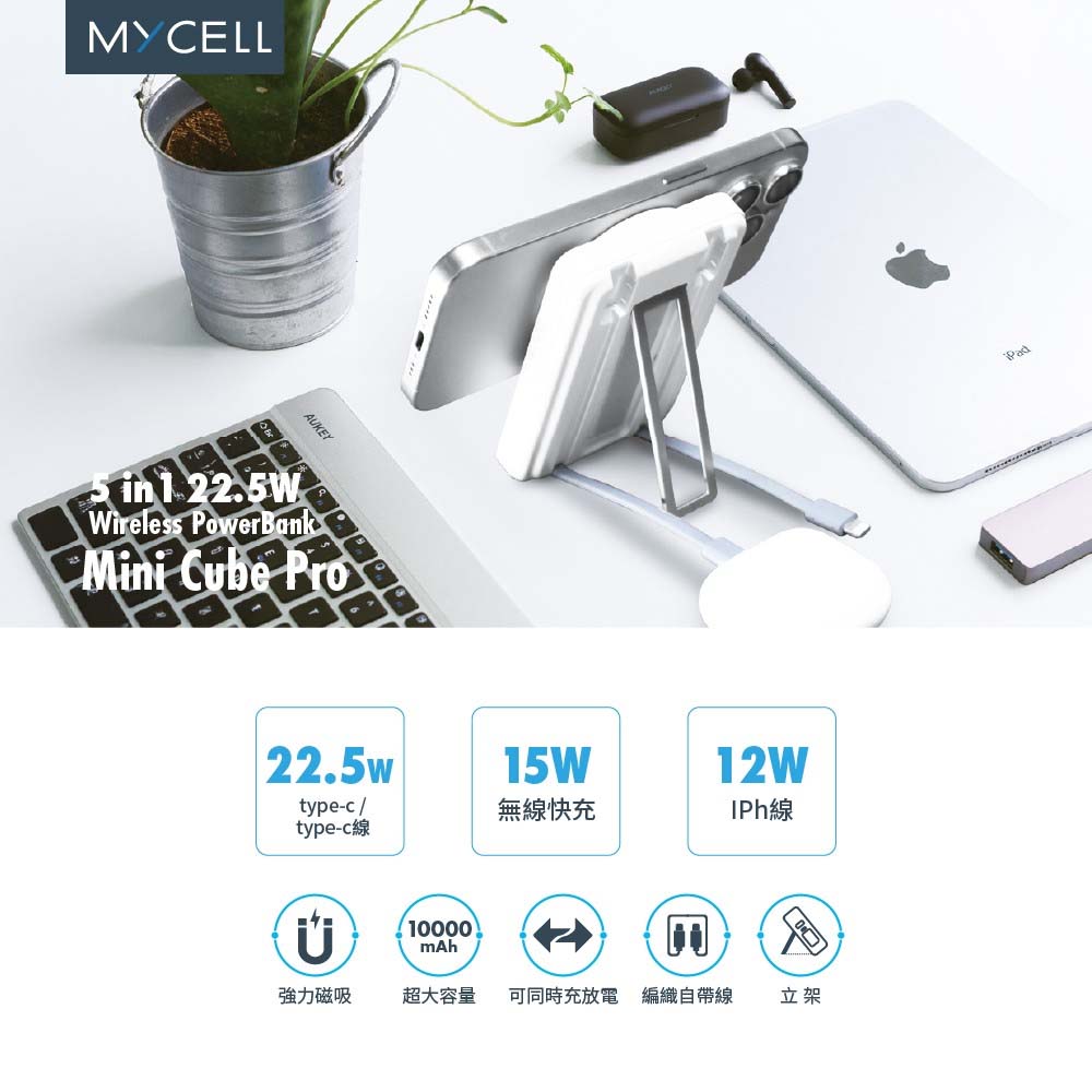 Macaron 馬卡龍 10000mAh 六合一萬用快充行動電源 無線充電 Magsafe 雙TYPE-C 自帶線