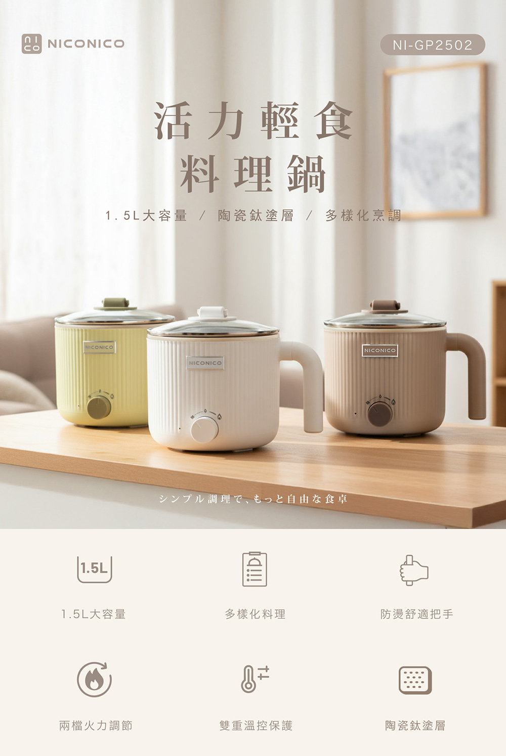 【NICONICO】輕食陶瓷鈦料理鍋NI-GP2502