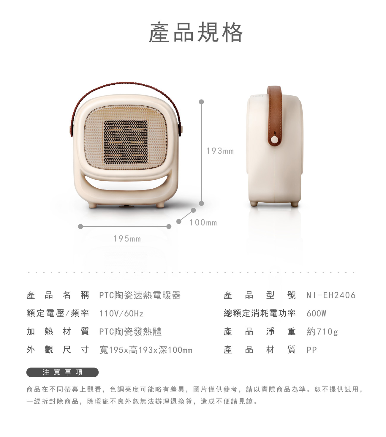 【NICONICO】 PTC陶瓷速熱電暖器NI-EH2406