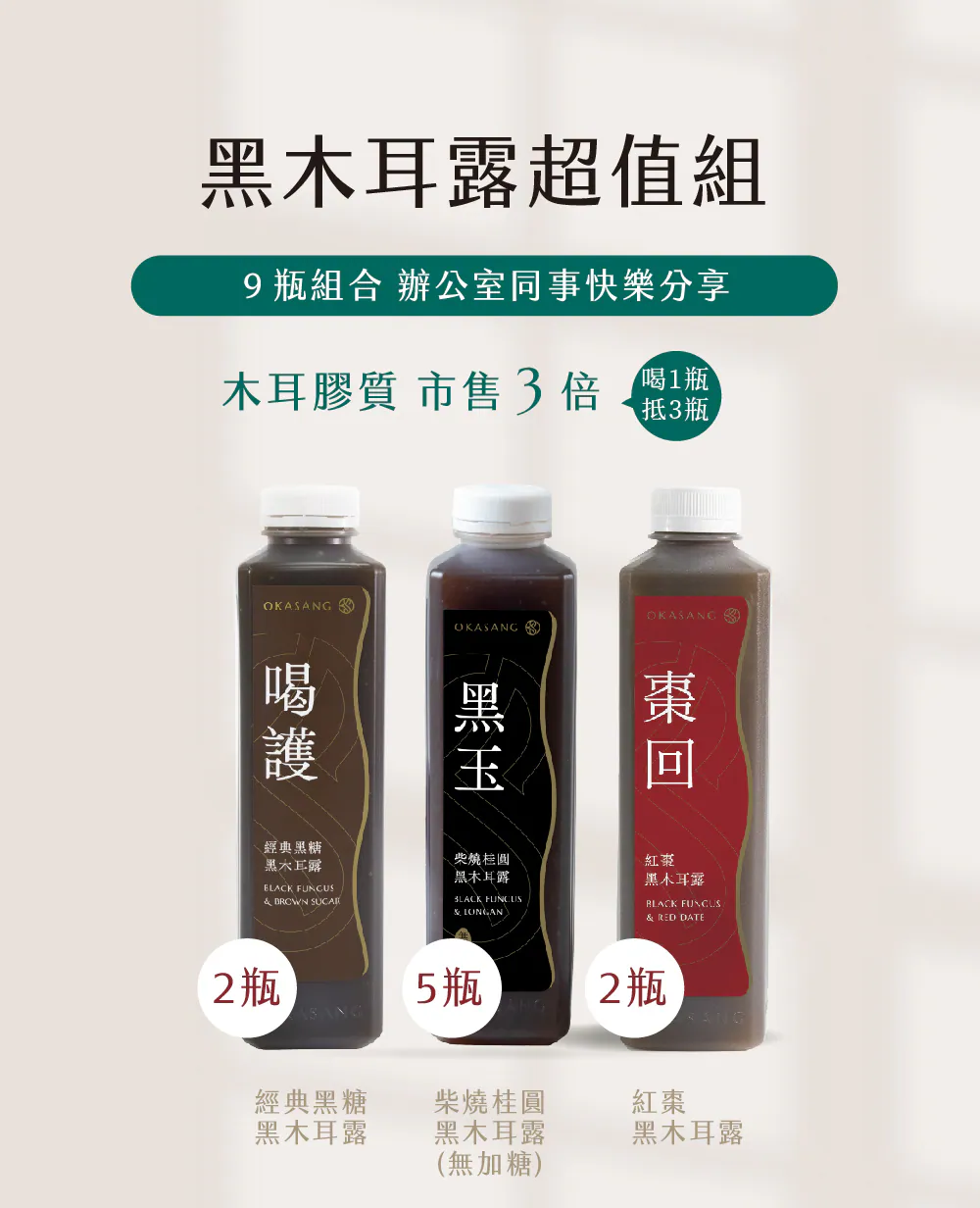 🎖️職人純手工古法柴燒桂圓,香氣風味絕佳,絕無添加香料調味!🎖細緻零顆粒木耳、好吸收、膠質高🎖非常時期喝護全家的健康🎖補充攝取膳食纖維,幫助消化順暢🎖飲食控制最佳神隊友🎖奶瓶幼幼兒、牙口不好長輩皆能安心飲用❓常見Q&A❓Q1.孕婦可以喝嗎?A1.白木耳系列整個孕期都非常適合,黑木耳系列建議4個月以上可以定期飲用Q2.保存時間多久?如何保存?A2.全新製成,未開封冷藏保存期限約30日左右,以瓶身後面保存期限為主,因飲品皆為無添加,開瓶後建議一週內飲用完畢。‼️請注意不可冷凍避免造成瓶身破裂‼️Q3.可否加熱飲用?A3.可以,可依照個人喜好倒入適合的容器中,用電鍋、微波、隔水加熱皆可加熱後攪拌均勻盡快飲用完畢,不能久放也請勿放回冷藏(若有添加珊瑚草產品則不建議加熱)🍵加熱建議🍵微波加熱:30-60秒隔水加熱:小火慢煮60秒電鍋加熱:外鍋加入1/4碗水*因產品皆為無添加防腐劑、抗氧化劑、制酸劑,若有遇飲品配達有失溫或者變質情形請立即聯絡客服回收及後續服務☎️客服專線:0800-001-394🗒️LINE:@okasang🤵♀️客服服務時間:一、二 8:30-17:00三、四 、五 8:30-21:00六、日 10:00-21:00