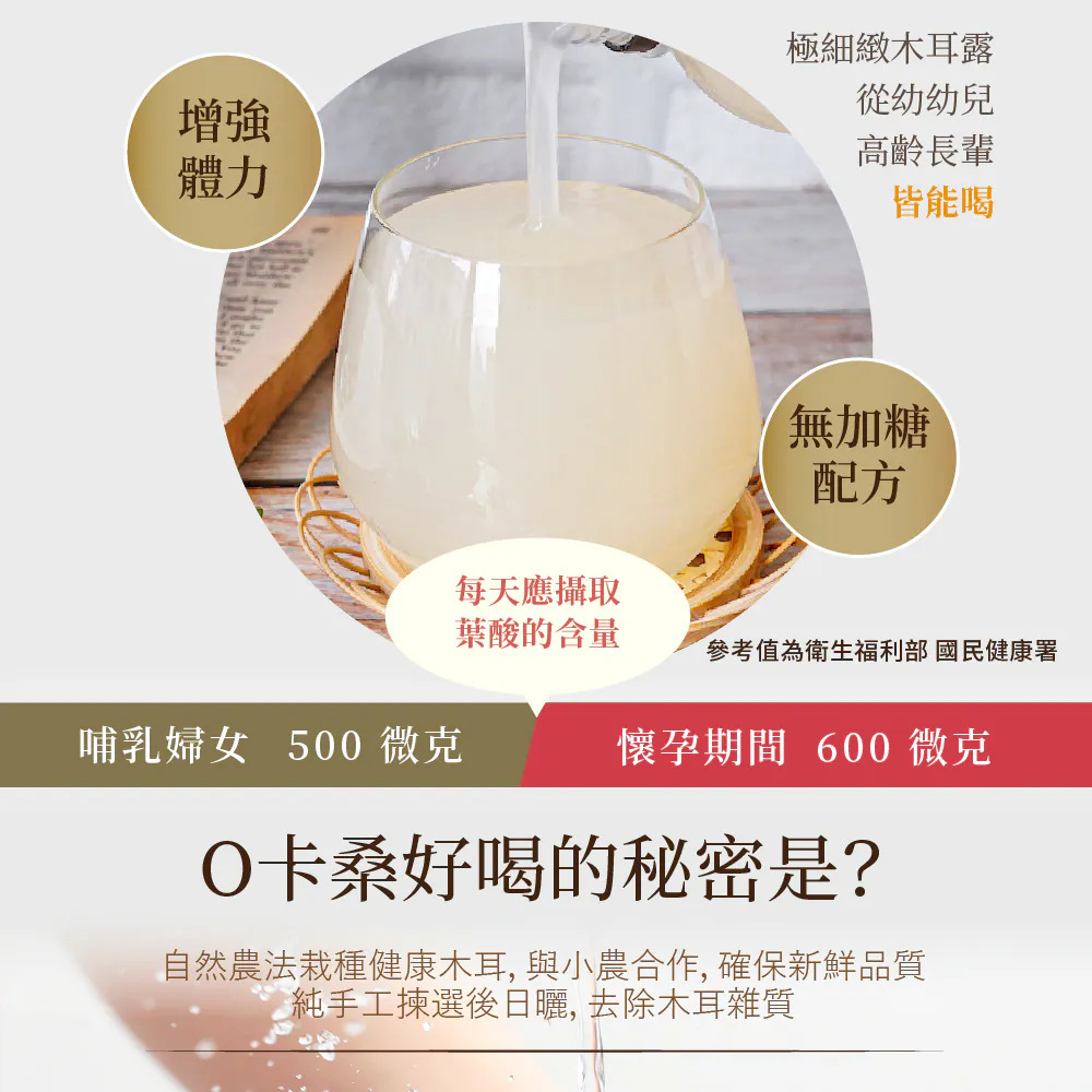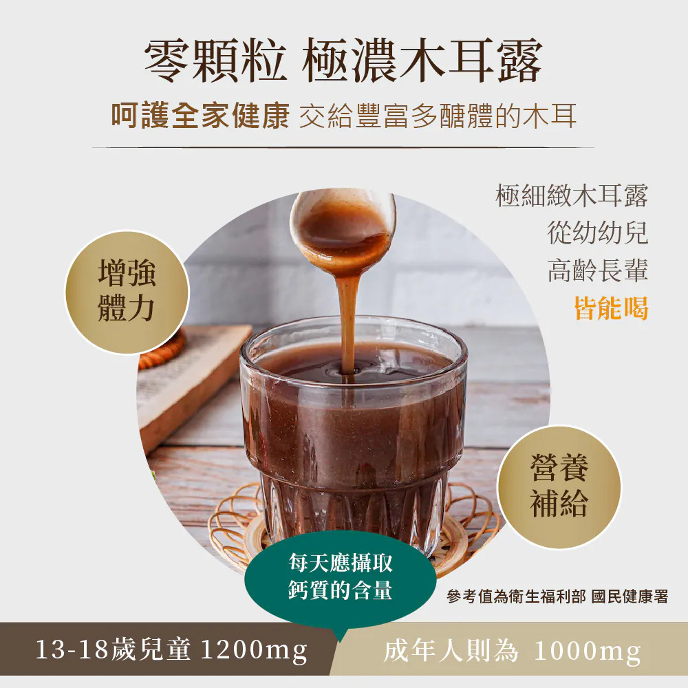 柴燒桂圓黑木耳露(無加糖):水、黑木耳、柴燒龍眼乾/原味白木耳露(無加糖):水、白木耳