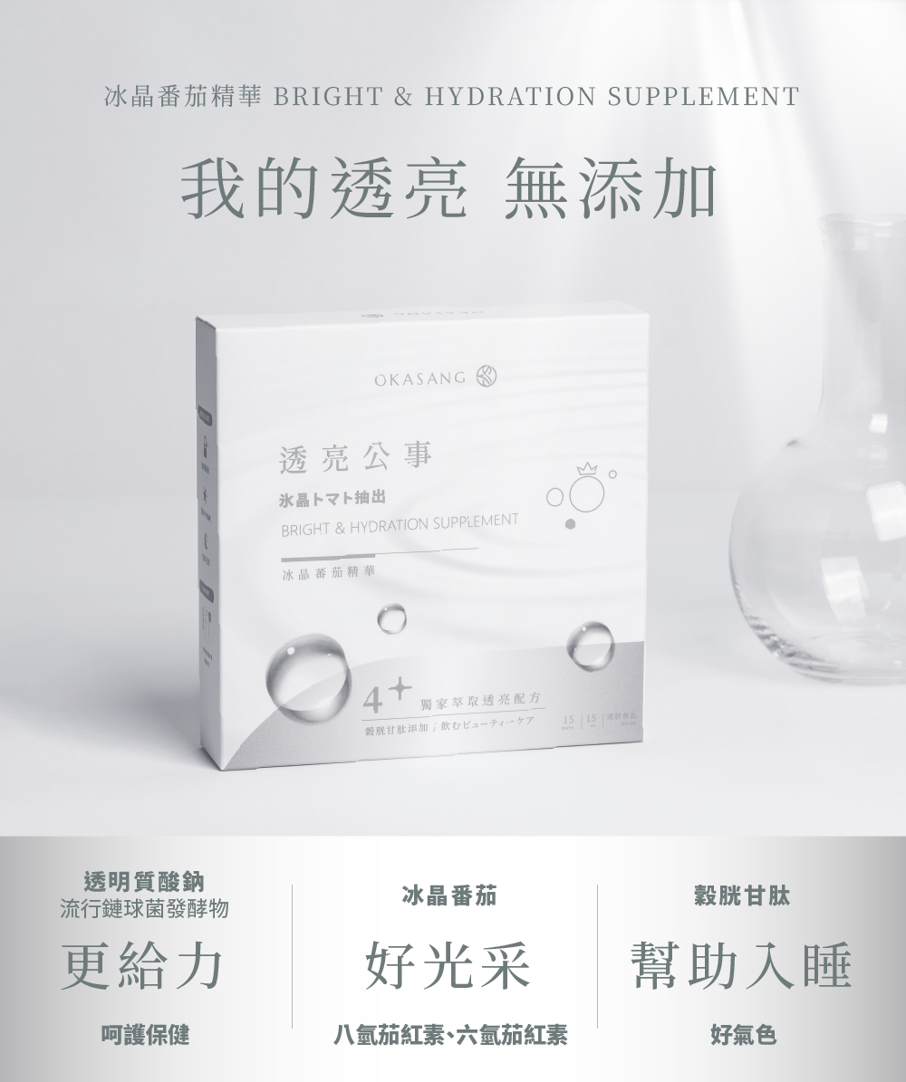🎖透亮公事|內涵4大透亮食材冰晶蕃茄、玫瑰花、鏈球菌發酵物、穀胱甘肽