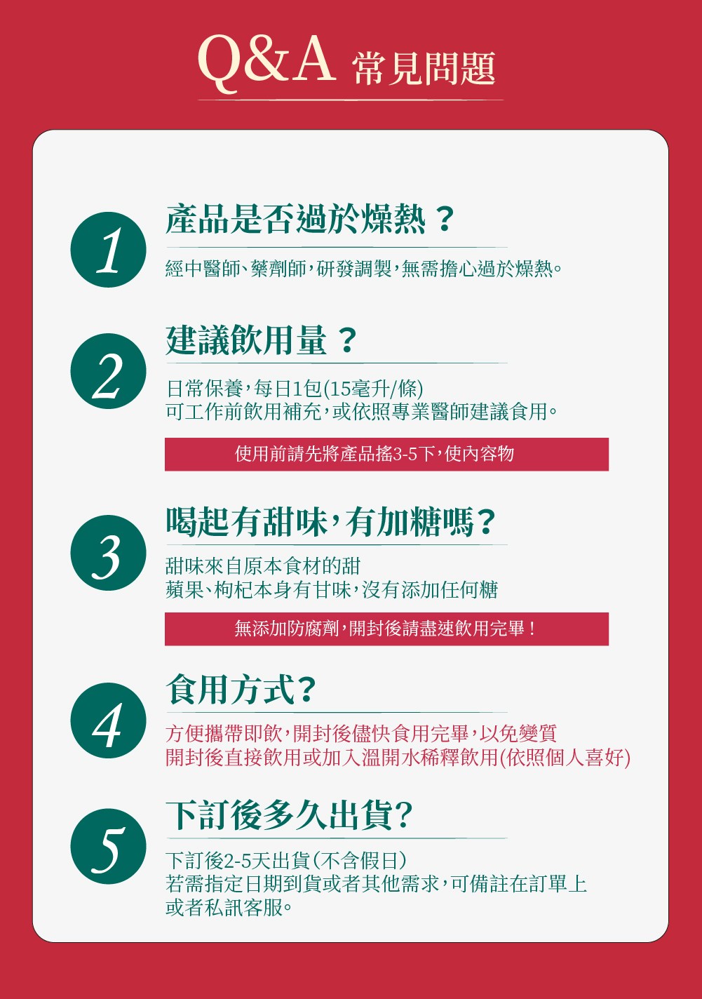 A1.經中醫師、藥劑師研發調製,無須擔心過於燥熱