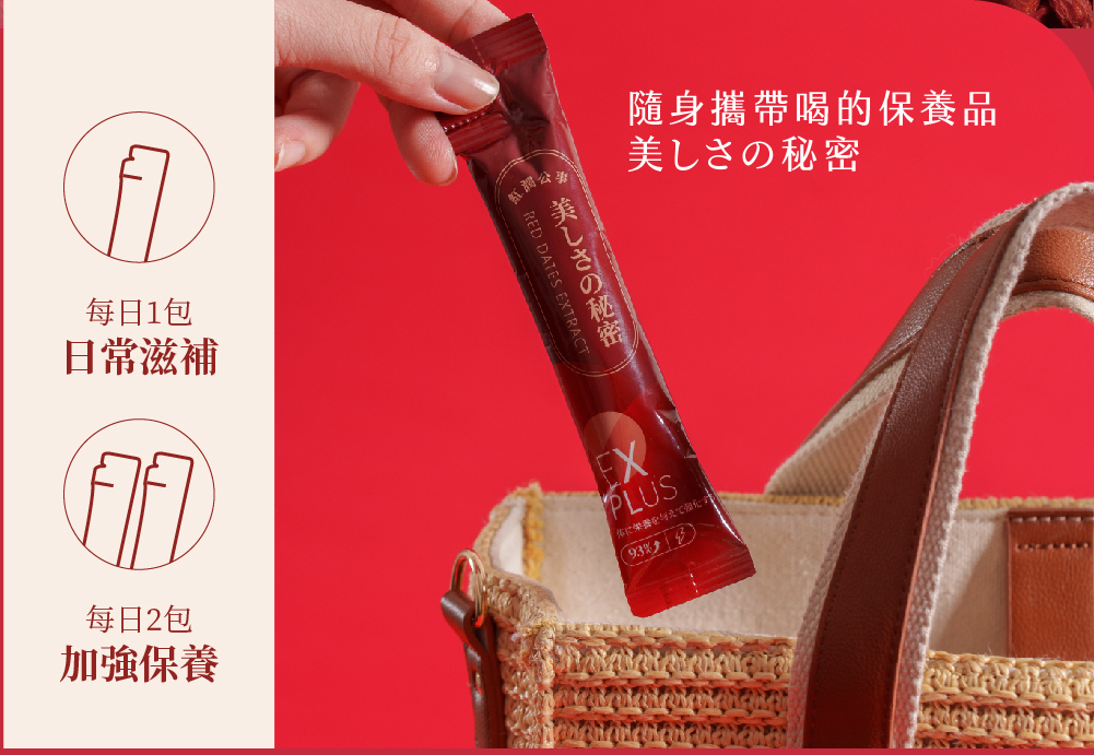 原汁萃取,無添加糖及香料,0食品添加專為女性設計,針對各階段全速補充紅潤公事 | 每日一包,維持好氣色補充體力、促進代謝、經期保養每日一包搞定一條=30杯紅棗茶