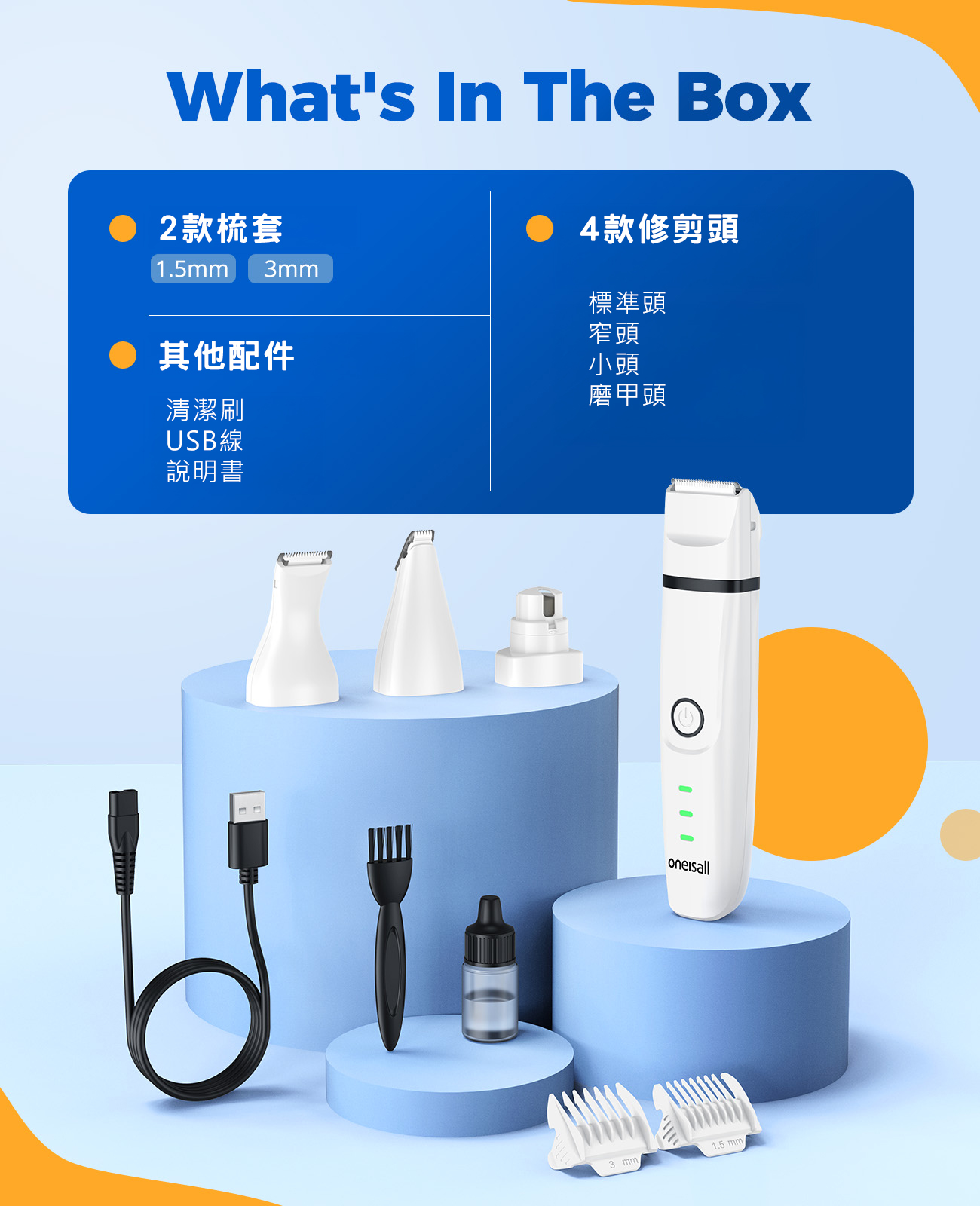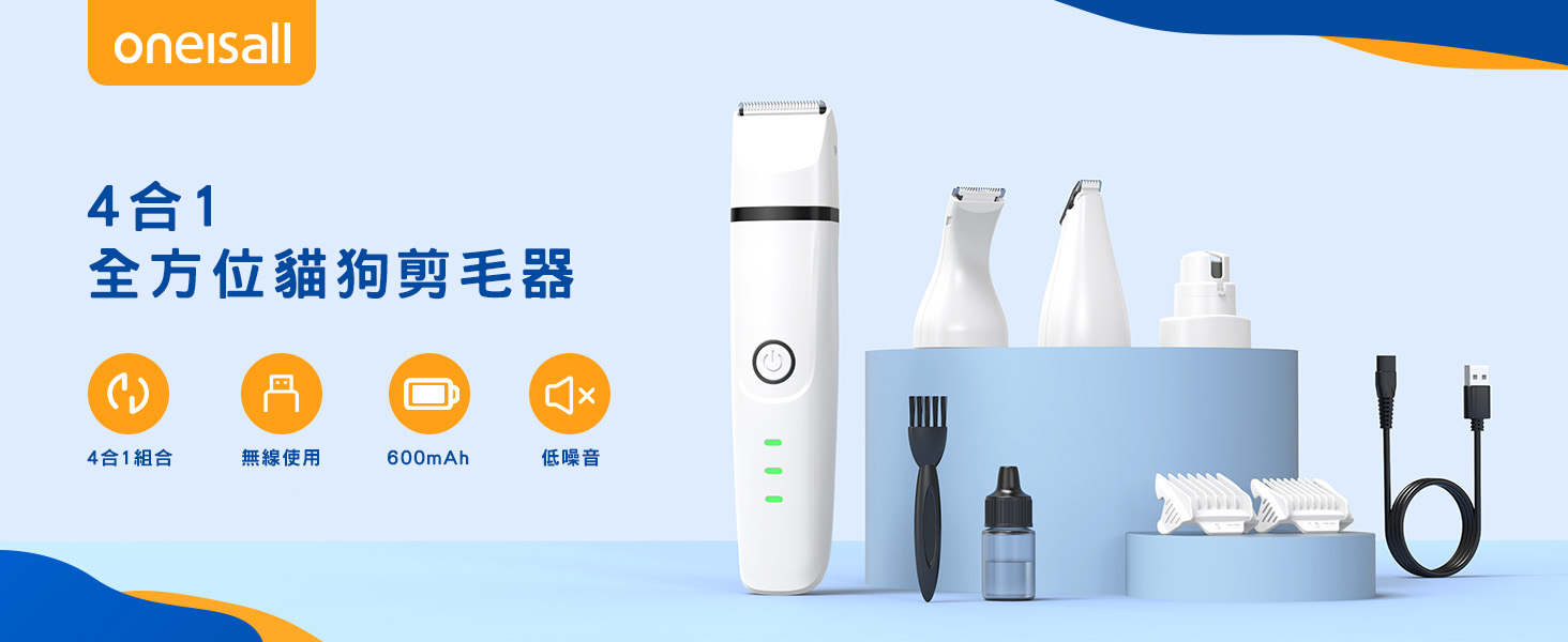 Oneisall N12 │ 4 合 1 靜音狗貓電動剪毛器