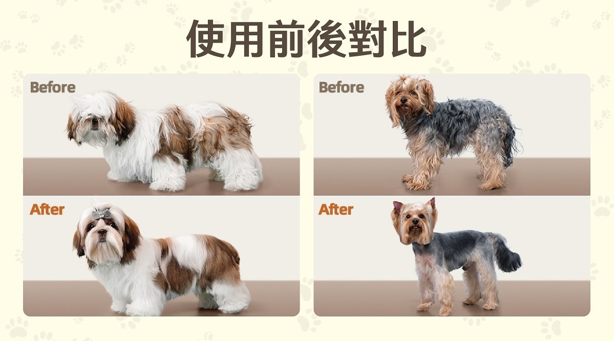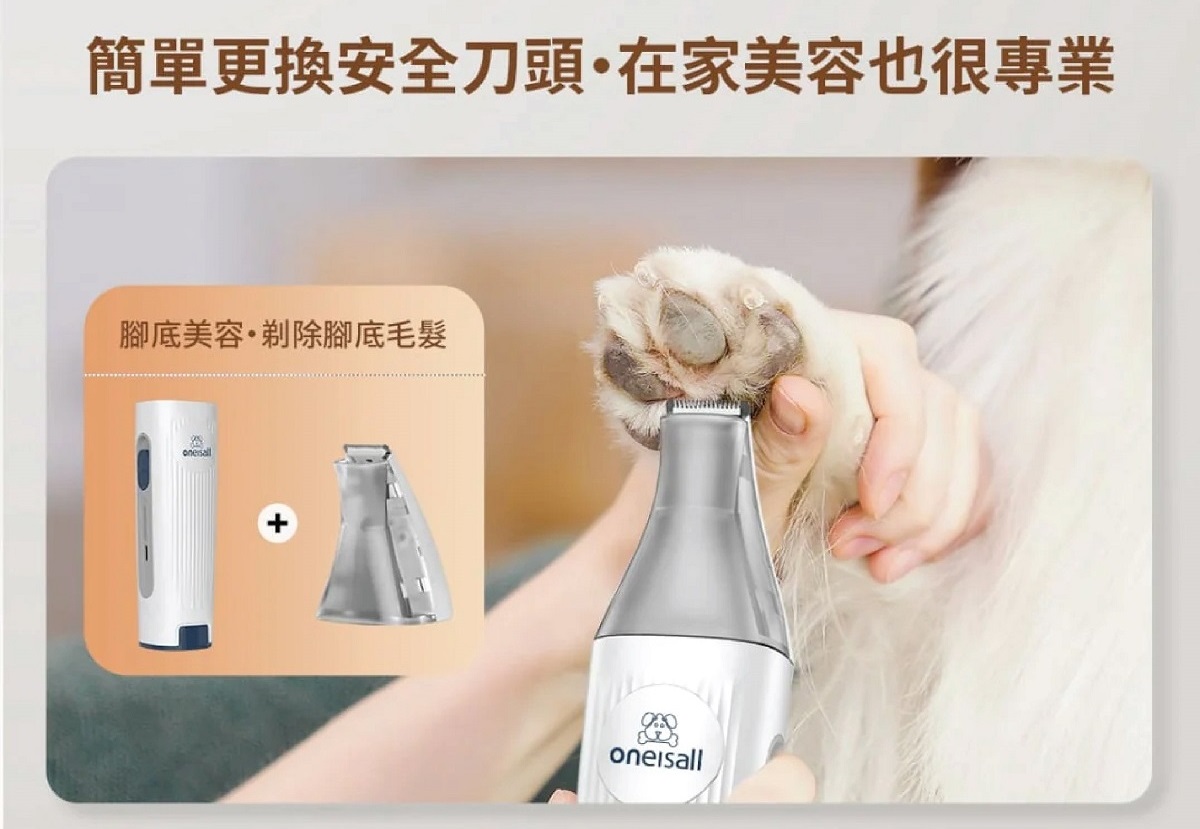集剪毛、梳理、吸毛於一機,七款專業配件+低噪音設計。
