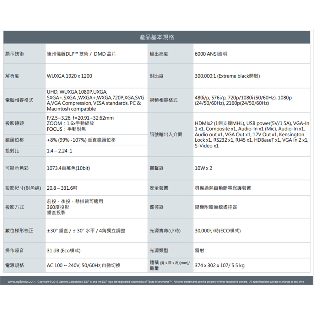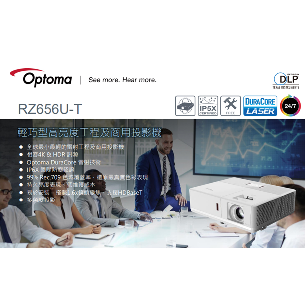 昌運監視器 OPTOMA RZ656U-T 輕巧型高亮度工程及商用投影機 6000流明雷射投影機