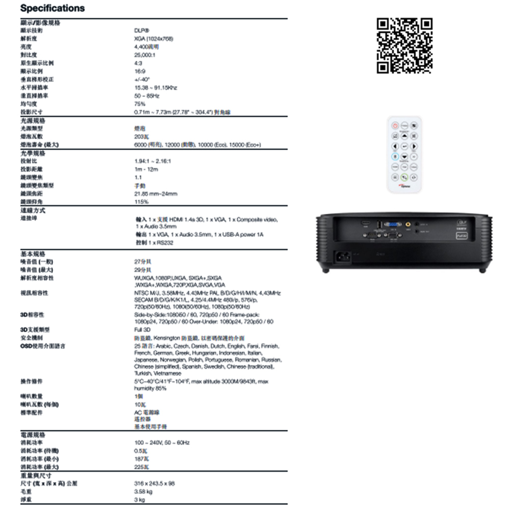 昌運監視器 OPTOMA TP401X XGA 多功能投影機