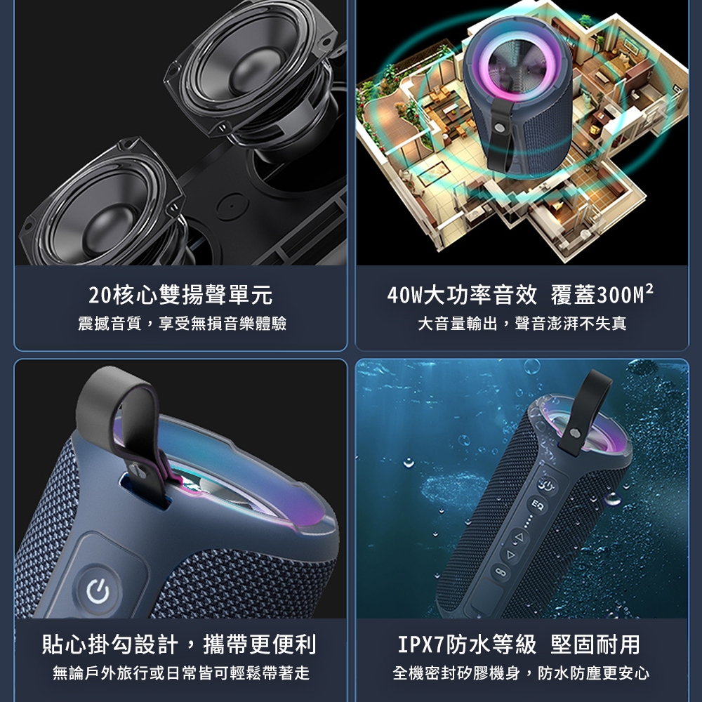 【ortizan】X30 炫彩藍牙音響|40W立體輸出 高解析音質 EQ模式 IPX7防水
