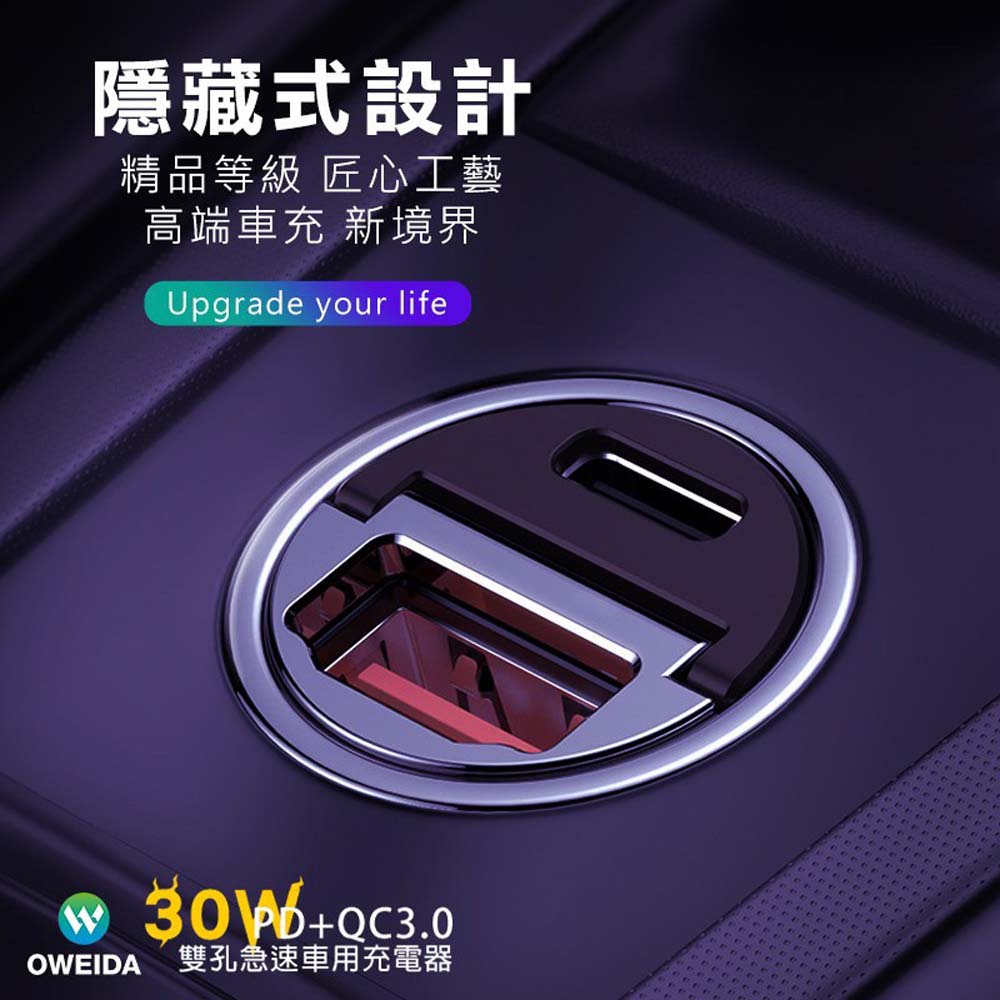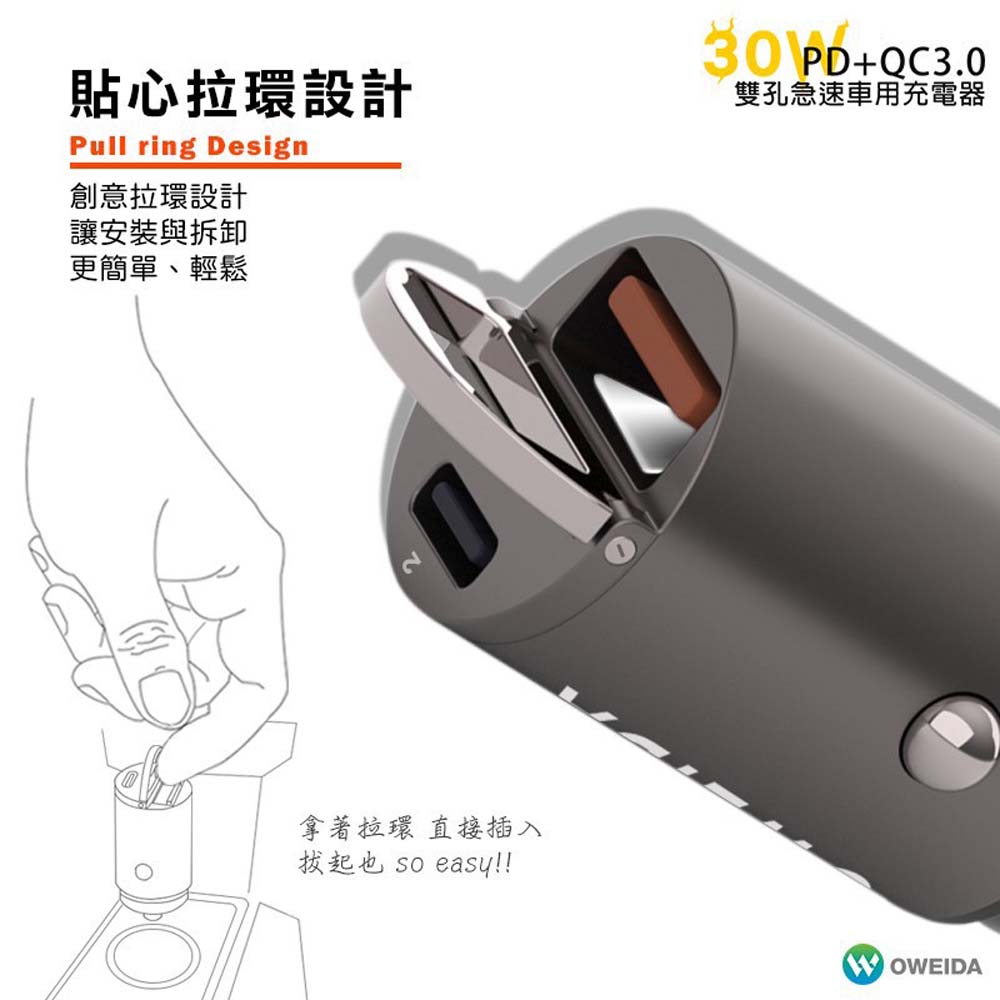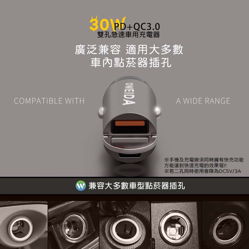 【山水之寶】30W PD+QC3.0雙孔急速車用充電器