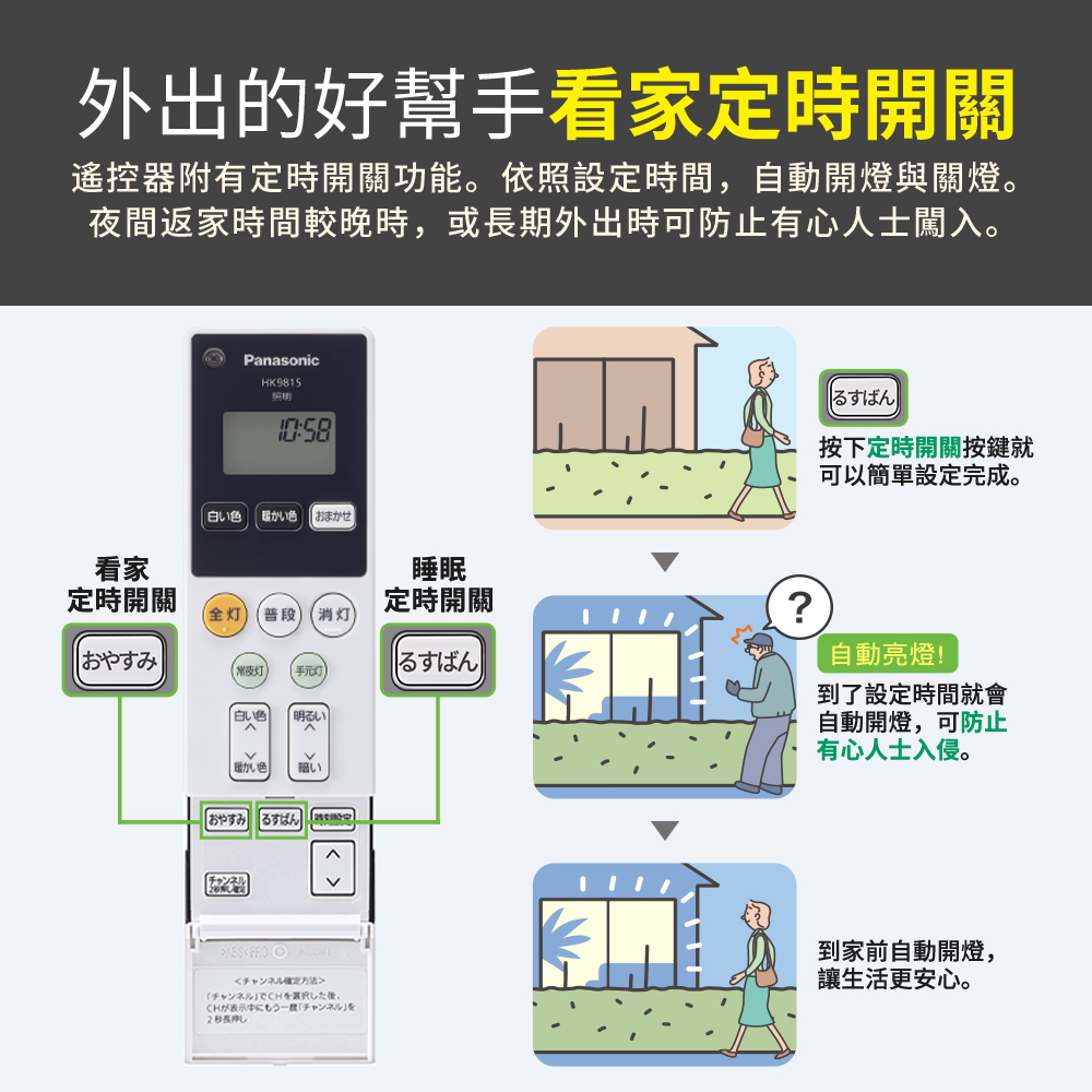 ★業界NO.1超高光效155.8(lm/w)★國際牌Panasonic最新款獨家保固5年★採高規最適用閱讀色溫2700K-6500K★閱讀模式∶一鍵轉換至閱讀光線,文字更清晰★看家模式∶出遠門自動開關燈嚇跑小偷★漸變式調光調色,簡單自訂溫柔光色★定時開關燈,提醒自己上床睡覺★獨創燈具防汙、潔淨保護層,髒污灰塵不易附著★搭配旗艦款款遙控器:場景切換、智慧情境、手電筒★日式引掛設計,後續更換比換燈泡還簡單!★LED超耐用,平均使用可達10年左右★贈遙控器,隨心調整”亮度”及”白黃光色★國際牌Panasonic官方認證網路經銷商 購買有保障!