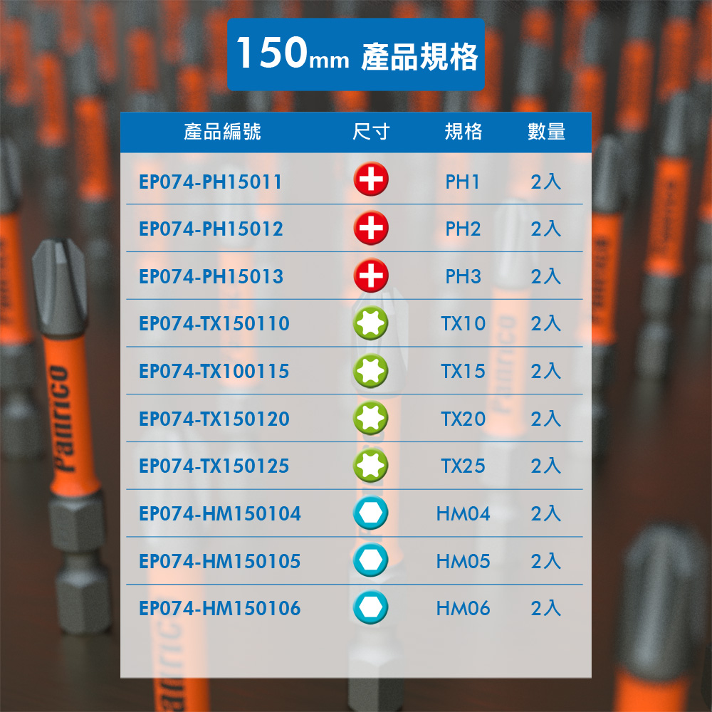 【Panrico 百利世】2支組高扭力起子頭150mm長星型TX10
