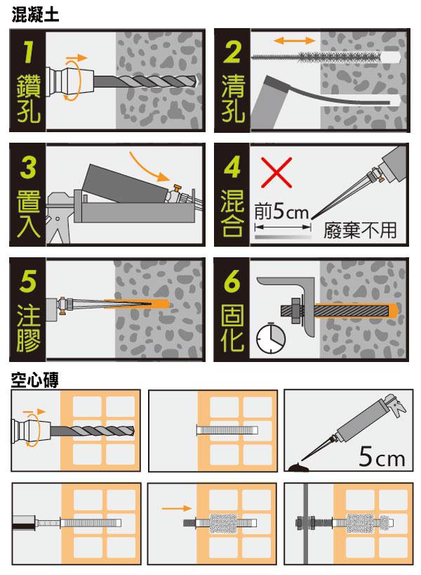 PEA300黏劑化學錨栓,不垂流,水平、垂直、倒吊皆可施工