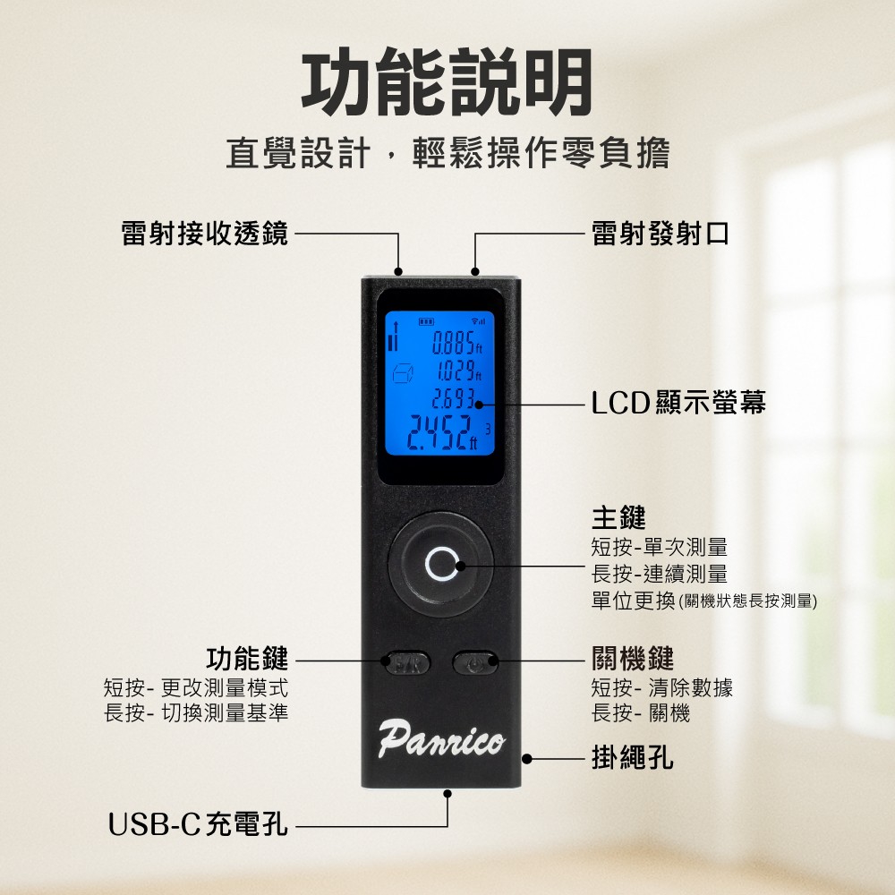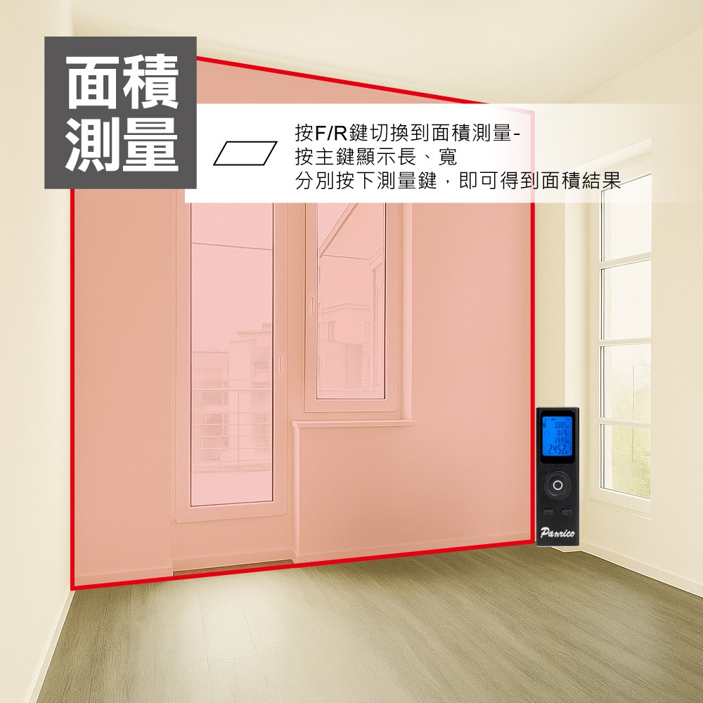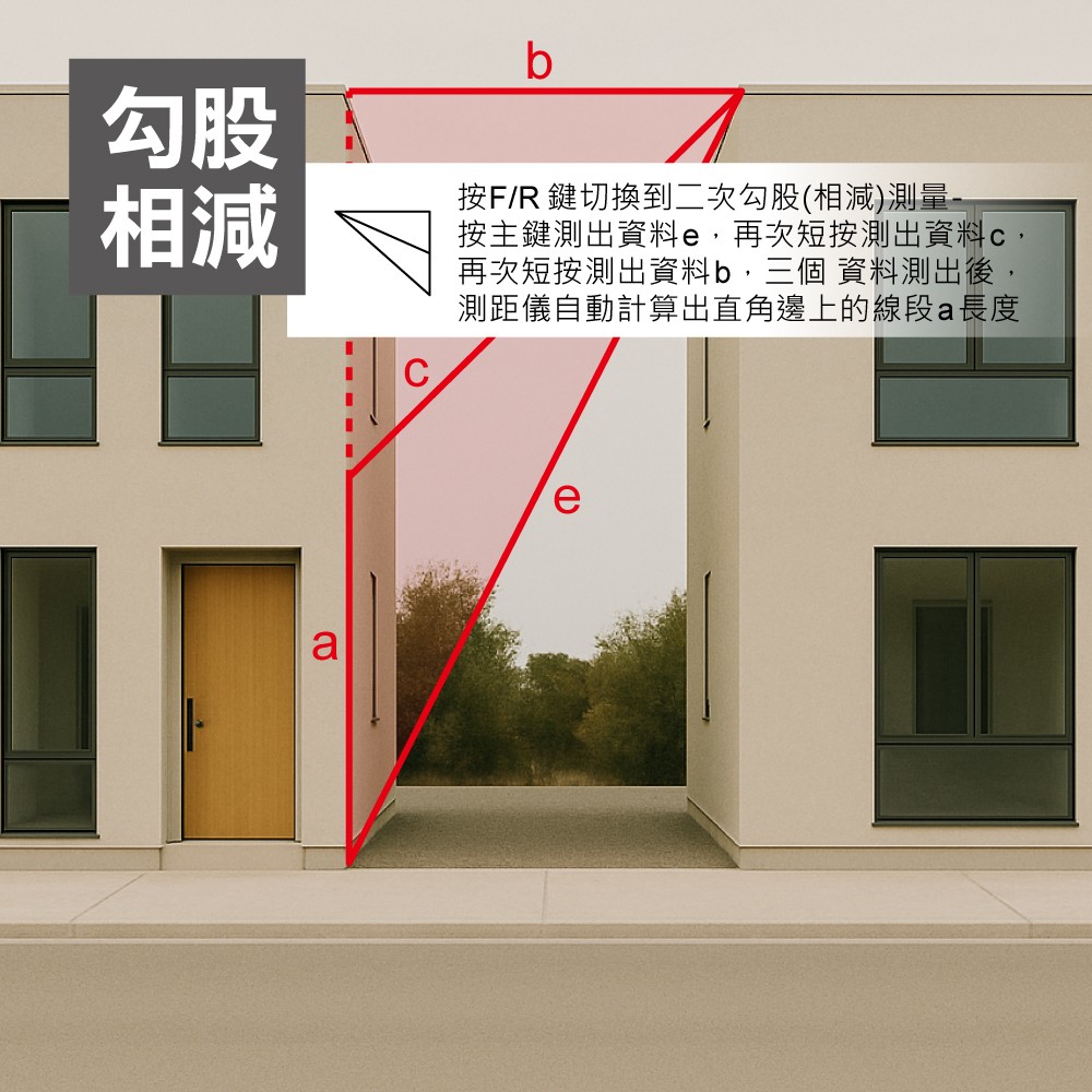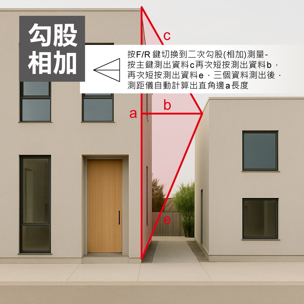 雷射測距儀可測量長度、面積、體積、勾股量測、勾股(相加)、勾股(相減)