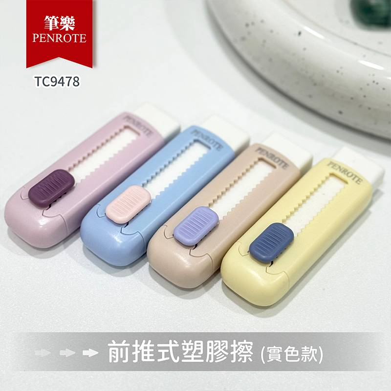 【PENROTE 筆樂】前推式塑膠擦 (實色) 4款
