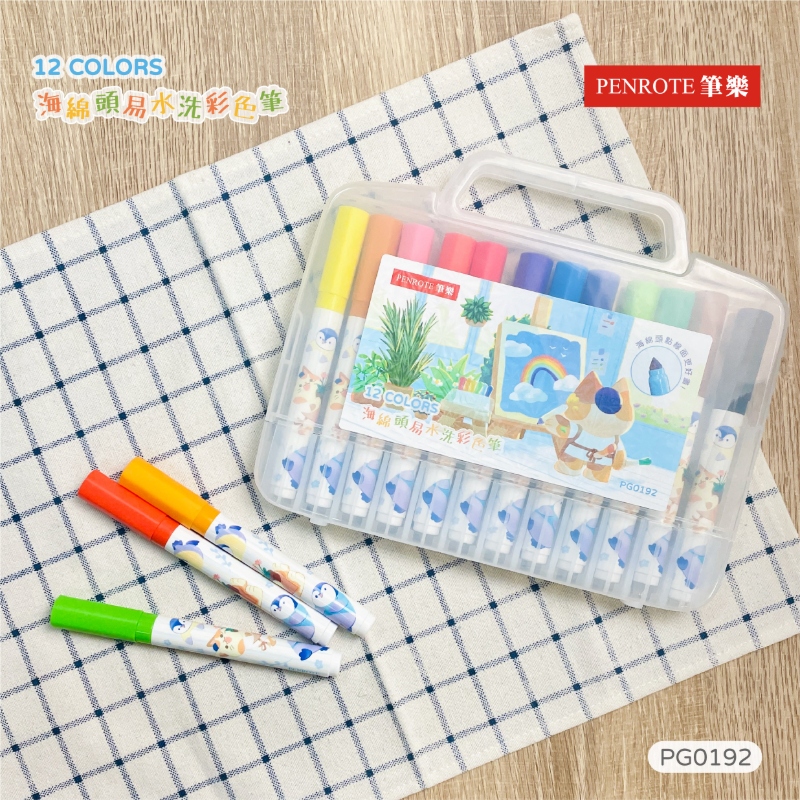 【PENROTE 筆樂】12色海綿頭易水洗彩色筆