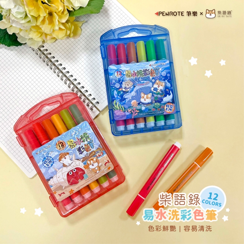 【PENROTE 筆樂】柴語錄12色易水洗彩色筆 粉