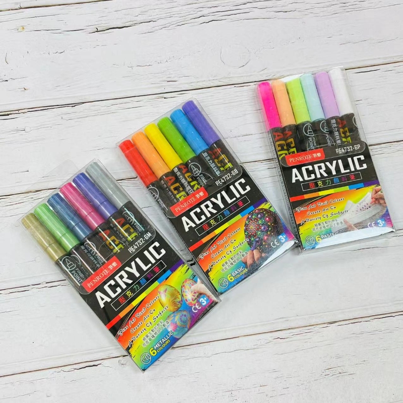 【PENROTE 筆樂】壓克力顏料筆6入(粗) 基本色
