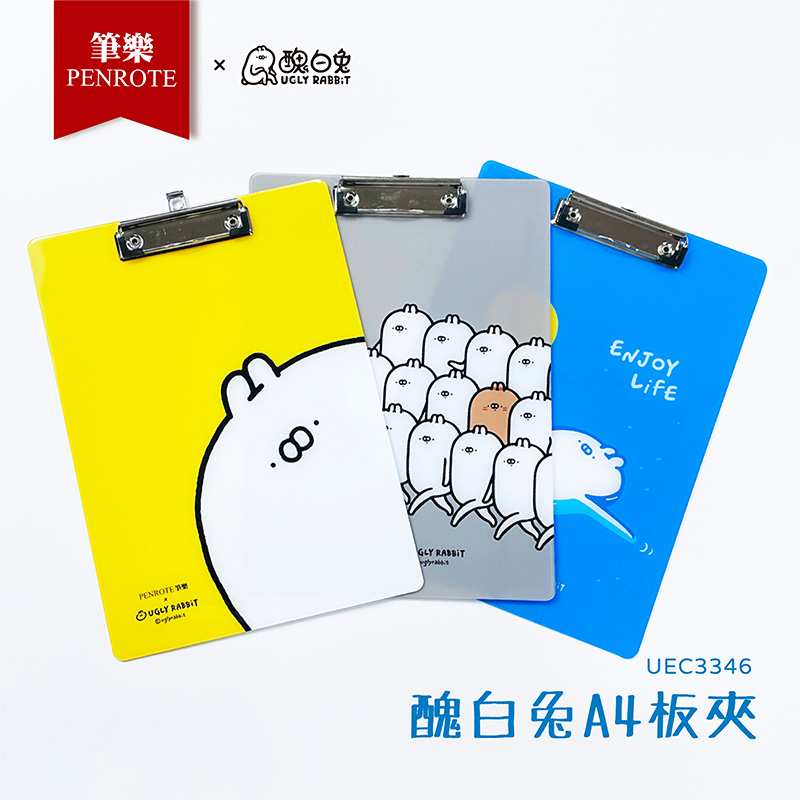【PENROTE 筆樂】醜白兔A4板夾 3款