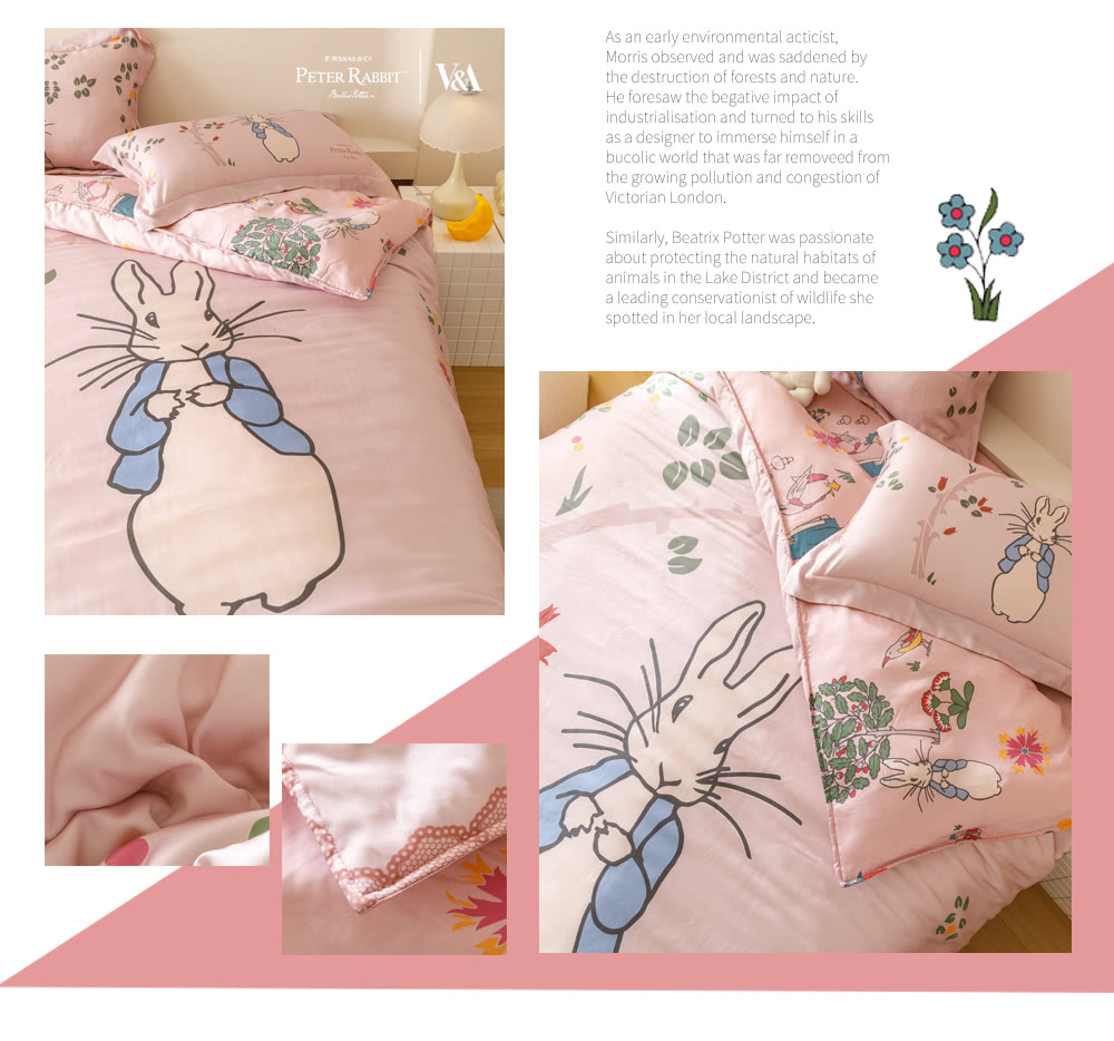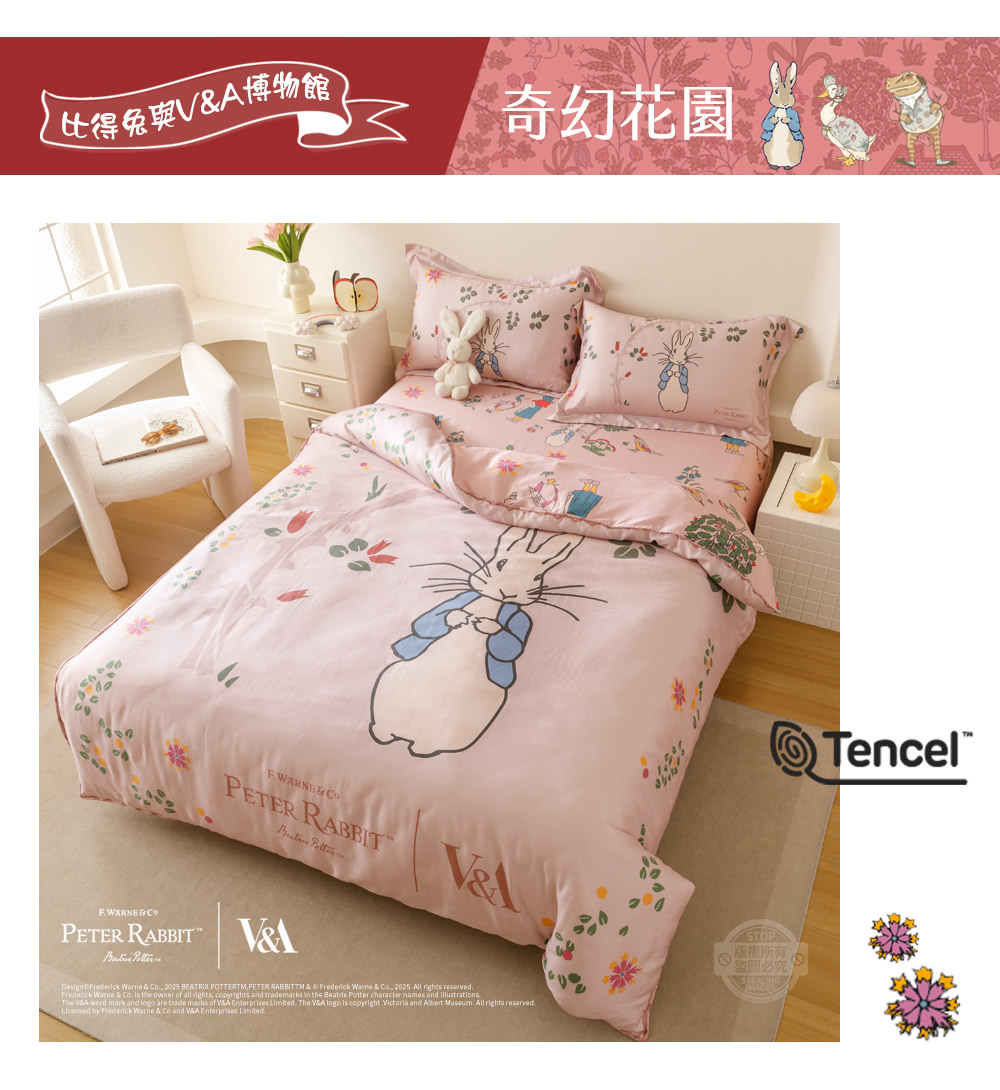 【奇幻花園】純天絲滑到回不去! 大版印花 × 100% 天絲,睡感質感雙升級,天絲控、比得兔粉都瘋狂入手! PETER RABBIT™ 比得兔 × V&A 博物館聯名 40 支純天絲|正版授權|多款可選 床包兩用被 4 件組,全新到貨!