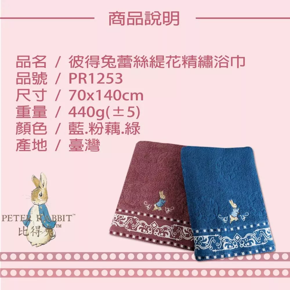 【PETER RABBIT】彼得兔純棉歐風新貴族蕾絲緹花精繡浴巾PR1253