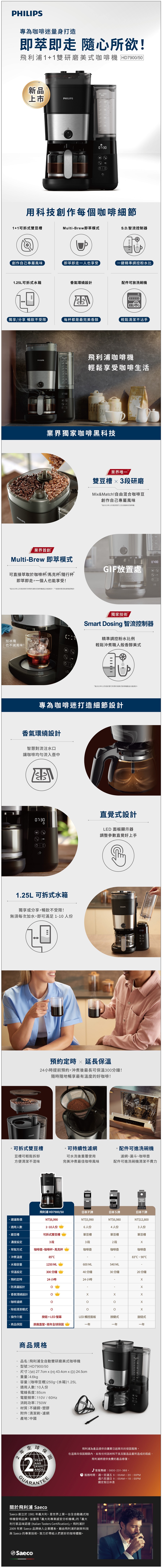 飛利浦 全自動雙研磨美式咖啡機 HD7900/50