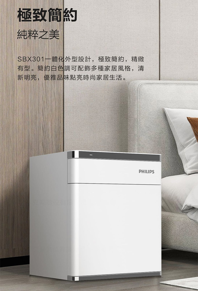 PHILIPS 飛利浦 智能 床頭櫃式 設計 保管櫃 (指紋/密碼 ) / 台 SBX301-簡約白