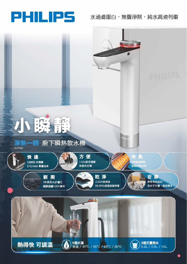 【麗水生活】Philips 飛利浦 AUT 7005 RO 櫥下式即熱淨水器 櫥下設備 櫥下飲水機