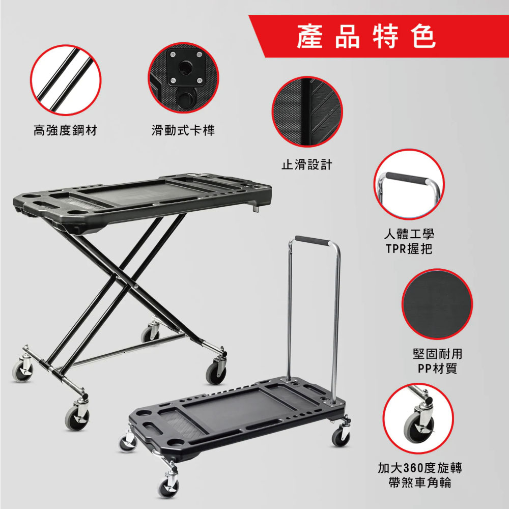 [寶力優 Powerbuilt] 多功能 3合1 工作桌 手推車 搬運車 台灣製造/642928ECE