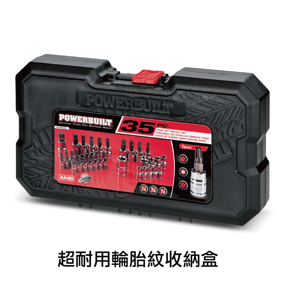 Powerbuilt 35件組套筒起子組,匯集常用的套筒起子尺寸,為汽車維修與工業作業提供完整解決方案。內含35款星型、中空星型壓配套筒與E型梅花套筒,涵蓋多種應用需求,讓您一組在手即可應對各式挑戰。