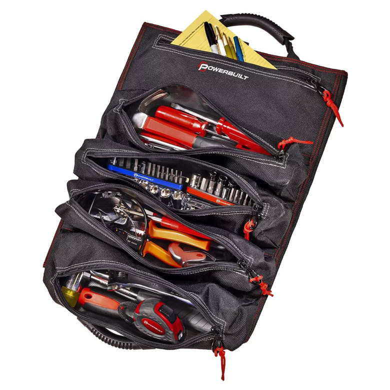 [寶力優 Powerbuilt] 多功能工具袋 營釘袋 營槌袋 露營包包 捲曲 手提 肩背工具包/240253