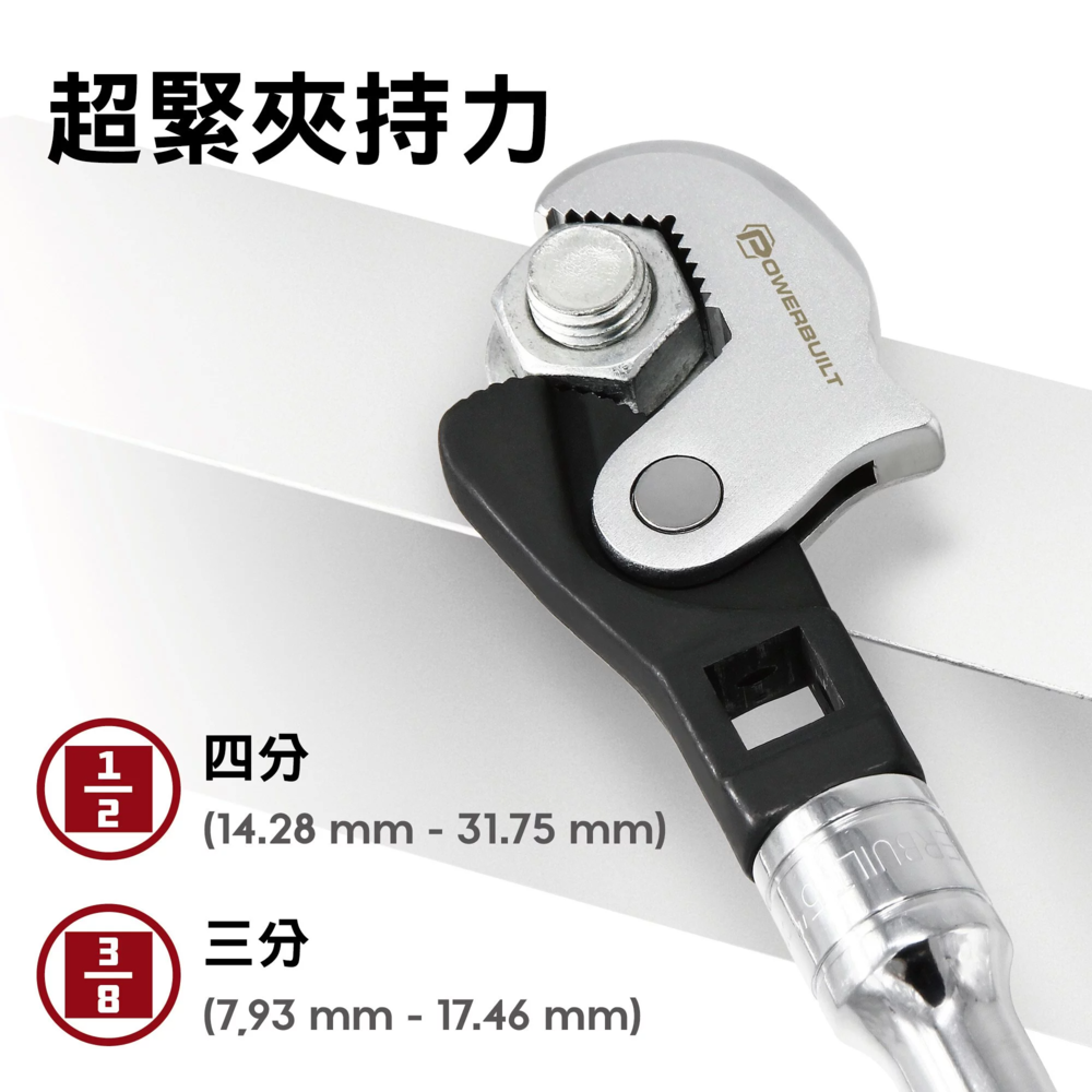 [寶力優 Powerbuilt] 兩件式自動調整萬能板手組 油管板手 三分四分接頭 台灣製造/240274