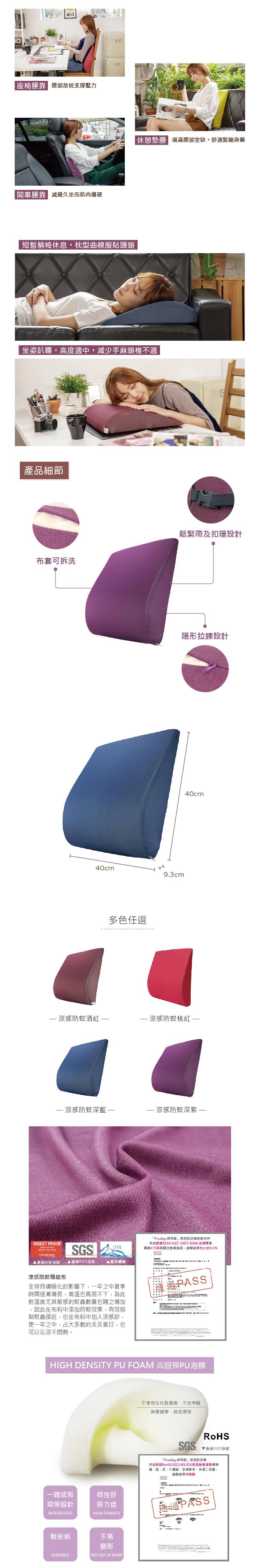 |涼感防蚊─4色|腰枕 靠墊 午睡枕 護腰 椅背靠枕