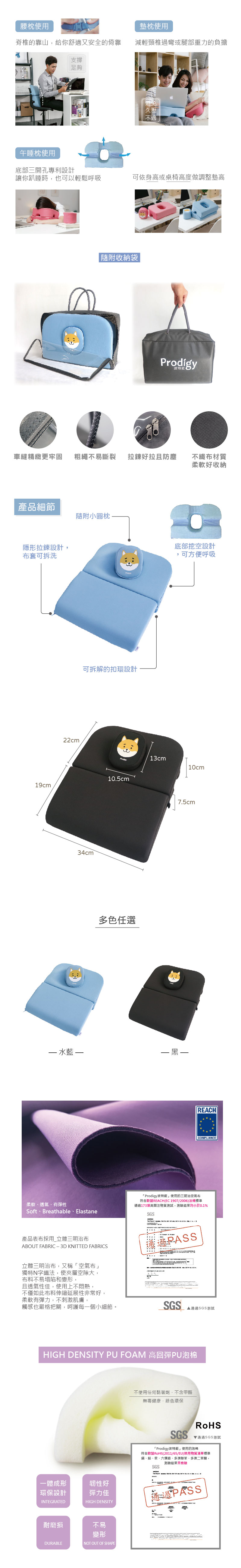 一次帶給你10大生活體驗,顛覆傳統午睡枕▲同時具備午休枕+腰枕+靠枕3合1用途▲三開孔專利設計,正趴也能呼吸順暢▲高密度彈力PU泡棉,軟硬適中且耐用期限長▲隨附小圓枕,正趴或側睡都能輕鬆使用▲嚴選優質三明治布作為表面層,高彈柔順,不易鬆垮▲布料通過SGS歐盟無毒標準,使用安心安全▲內附防塵收納袋,體積小攜帶方便【尺寸/重量】41*34*10cm(±1cm)/580g(±10g)【材質】聚酯纖維90%、彈性纖維10%、聚胺酯100%【產地】台灣【注意事項】① 產品顏色因每台電腦螢幕的不同,請依實際顏色為主② 正常使用情況下布套建議定期清洗或擦拭,並且深淺色分開來洗滌③ 請避免潮濕 / 浸水 / 火源 / 利刃 / 高溫 / 日曬④ 請勿堆壓重物 / 避免不當拉扯或擠壓 / 避免沾染化學藥劑或揮發性溶劑⑤ 枕芯正常使用下無須清洗,若有飲料等液體不慎流入可以清水沖洗後自然風乾即可,勿置於陽光下曝曬以免氧化影響使用壽命