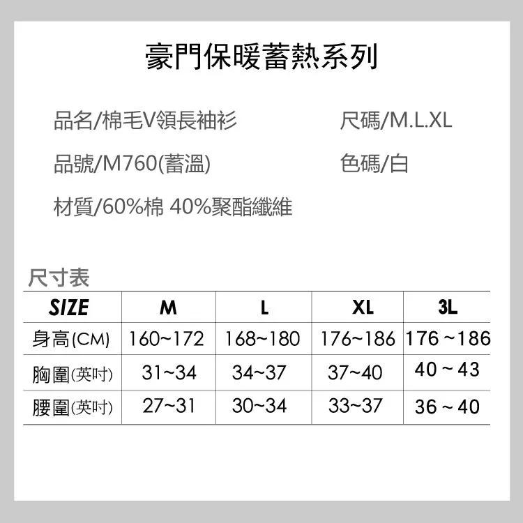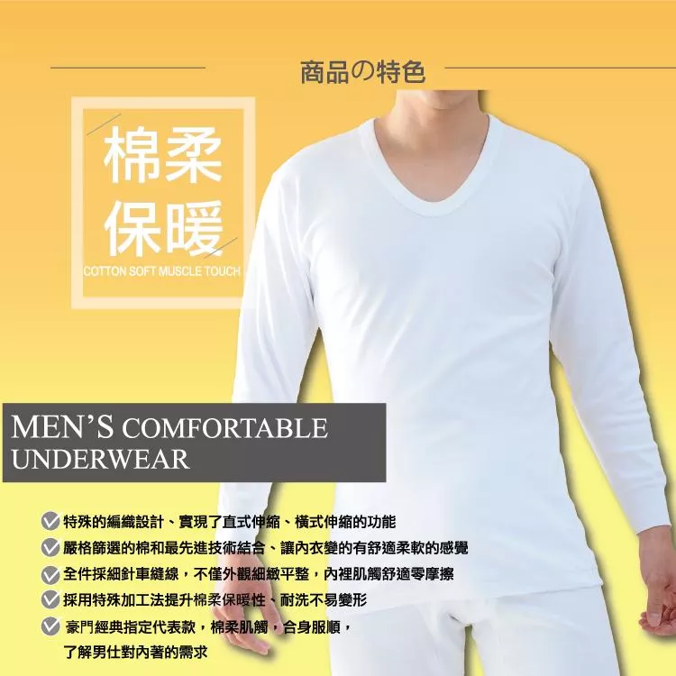 【豪門內衣】暖棉長袖V領男內衣M760保暖衛生衣