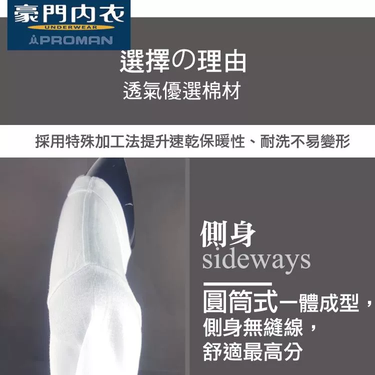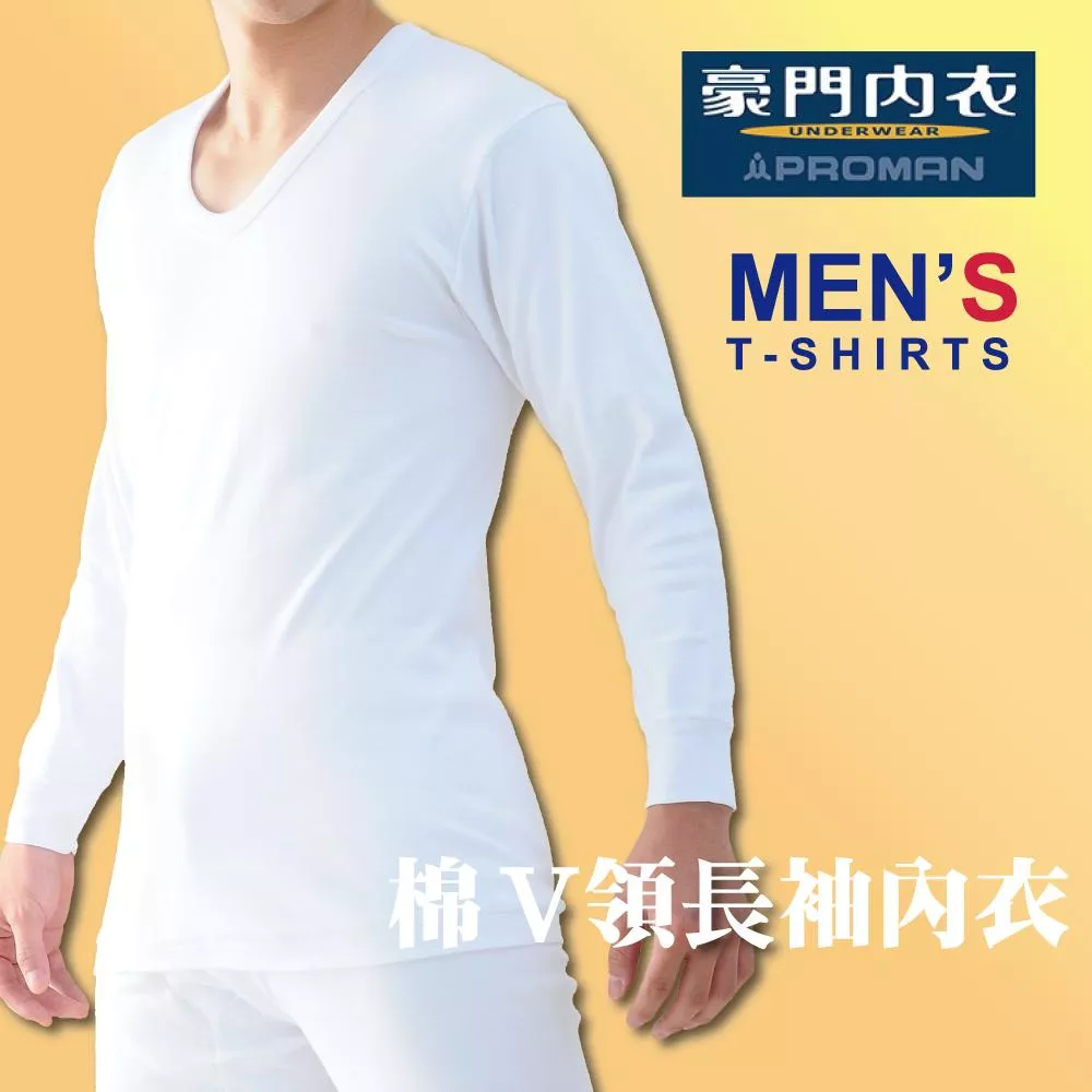 【PROMAN豪門】暖棉長袖V領男保暖衛生衣M760-白XL