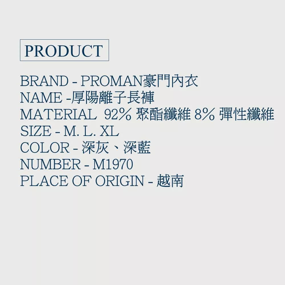 【PROMAN豪門】細絨陽離子速熱保暖男衛生長褲M1970
