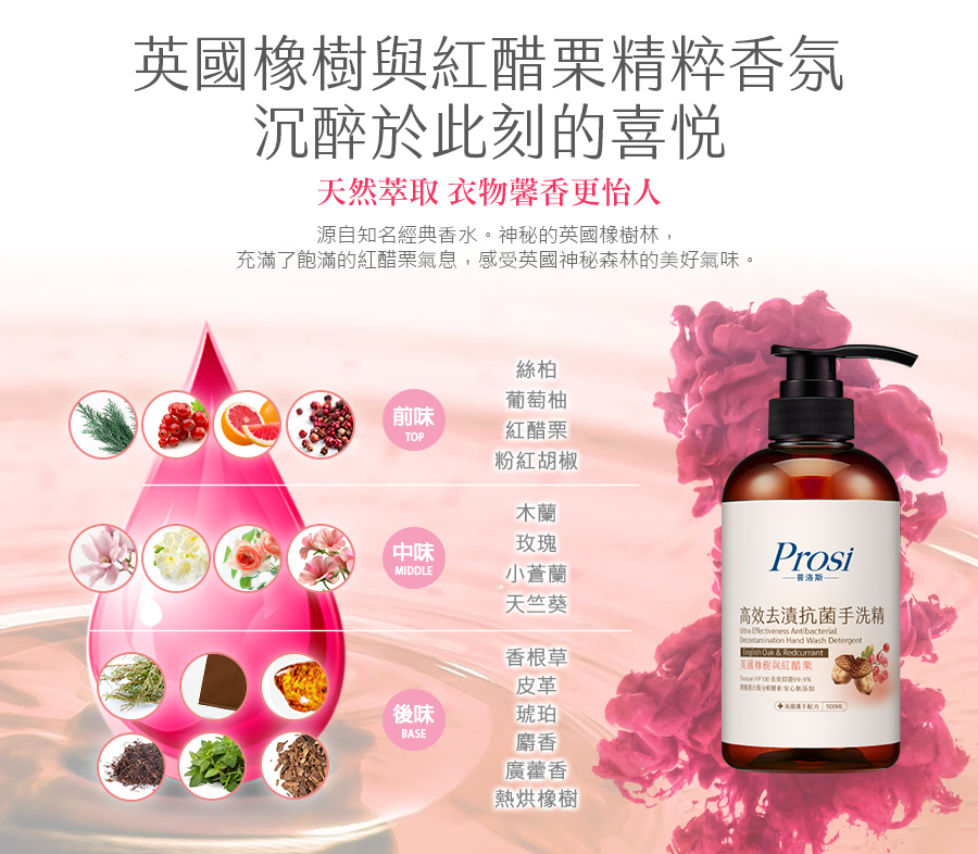 [Prosi普洛斯]高效去漬抗菌手洗精500mlx1入-英國橡樹與紅醋栗(護手配方)
