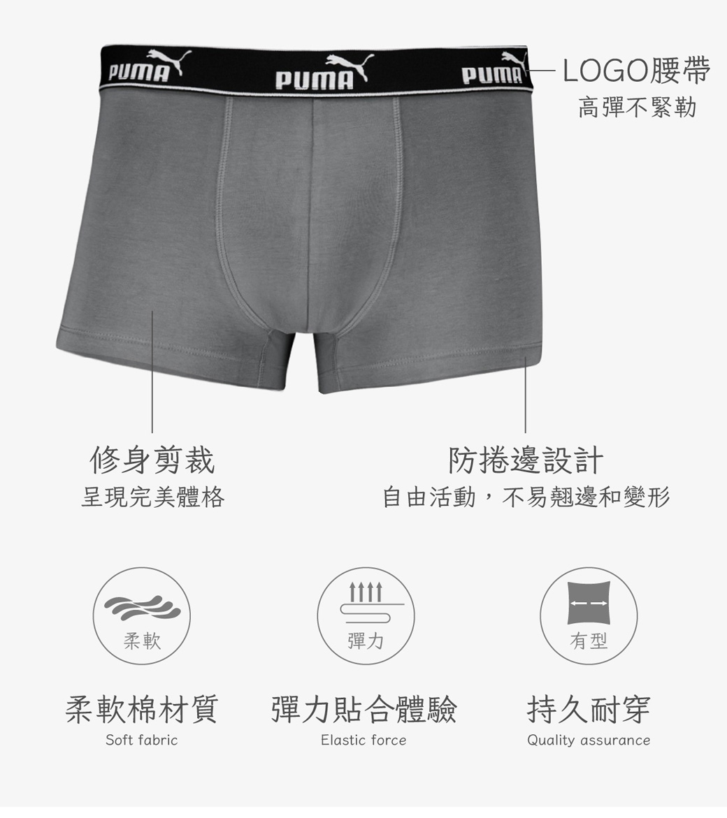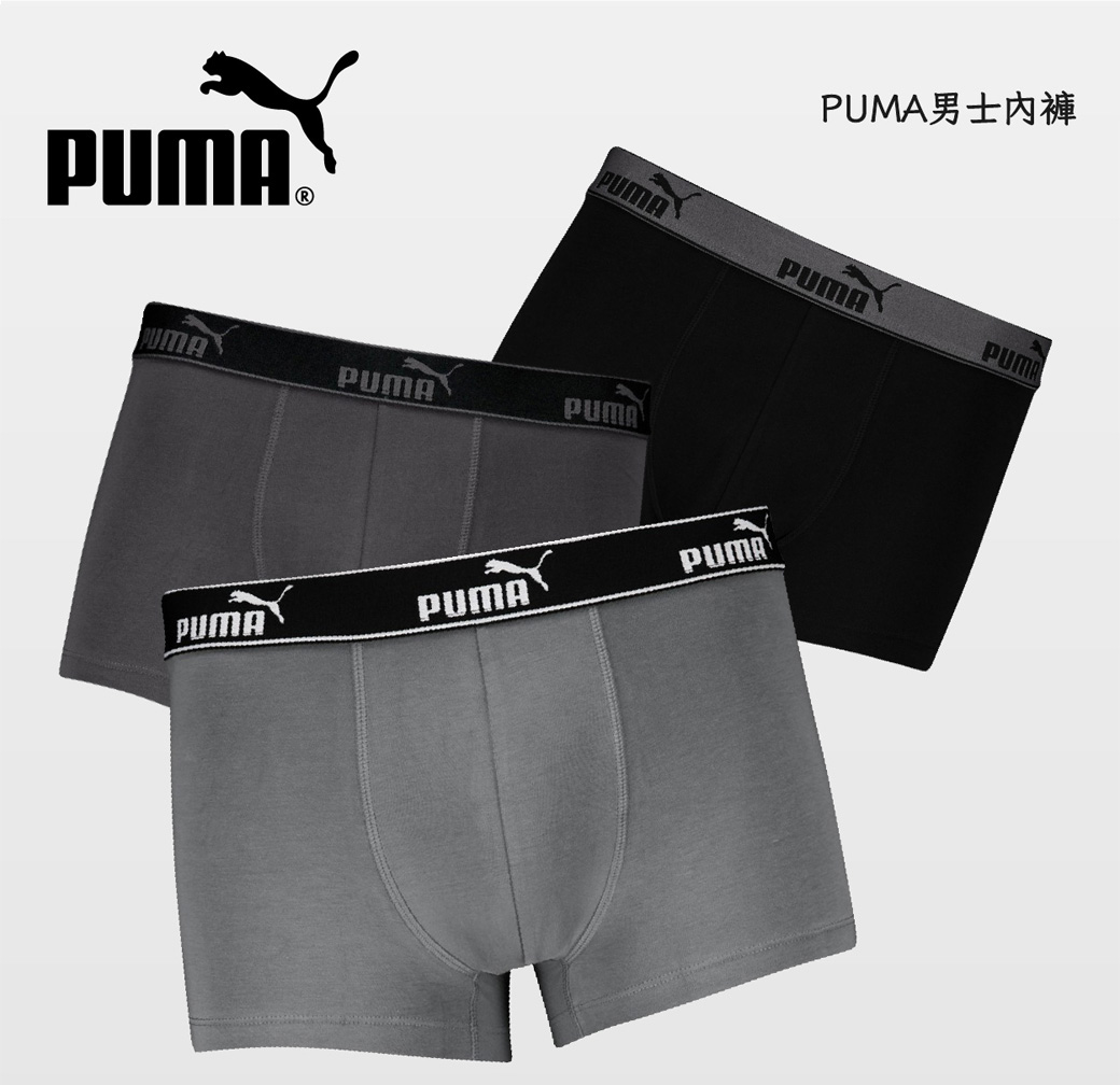 PUMA 平口內褲 1件組 彪馬 跳豹 男內褲 平角內褲 修身 防捲邊 貼合 耐穿 柔軟 棉質 透氣 抗菌 黑 深灰 灰