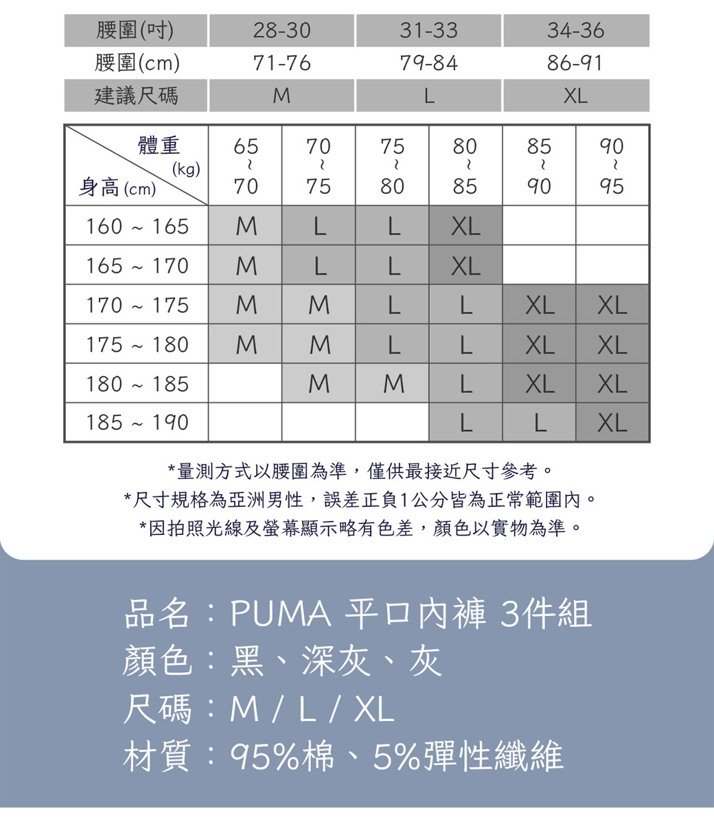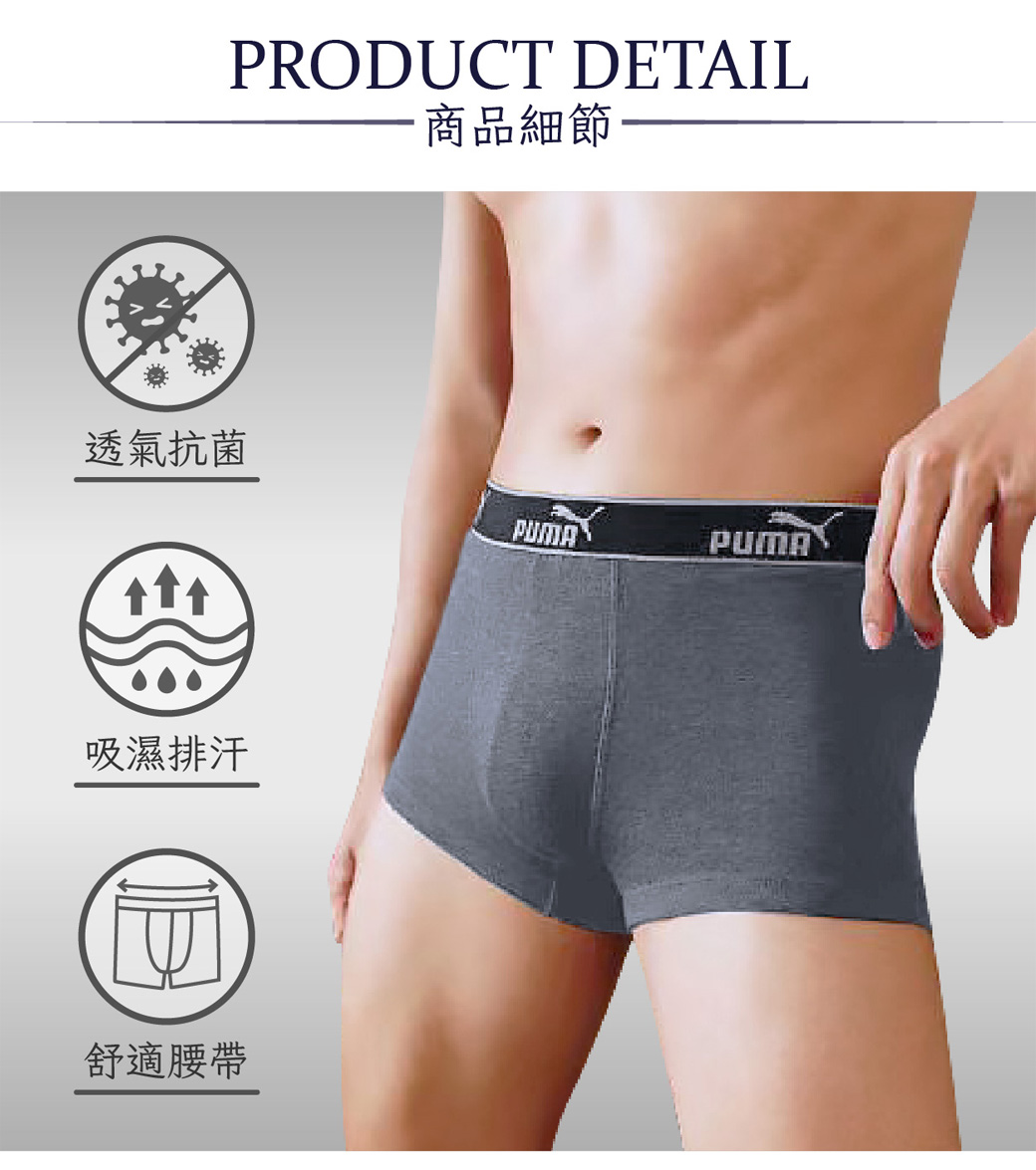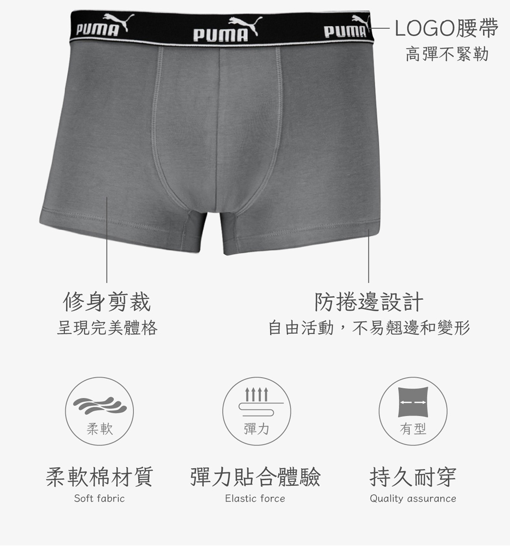 PUMA 平口內褲 3件組 彪馬 跳豹 男內褲 平角內褲 修身 防捲邊 貼合 耐穿 柔軟 棉質 透氣 抗菌 黑 深灰 灰