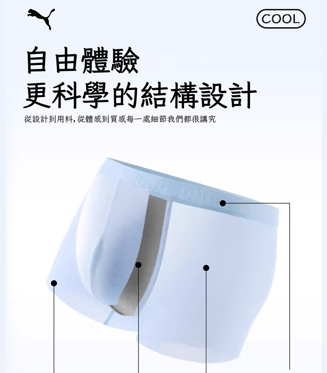 PUMA 涼感內褲 3件組 彪馬 跳豹 男內褲 冰絲內褲 平口內褲 涼感 彈力 貼身 透氣 抗菌 無痕 灰 淺灰 淺藍