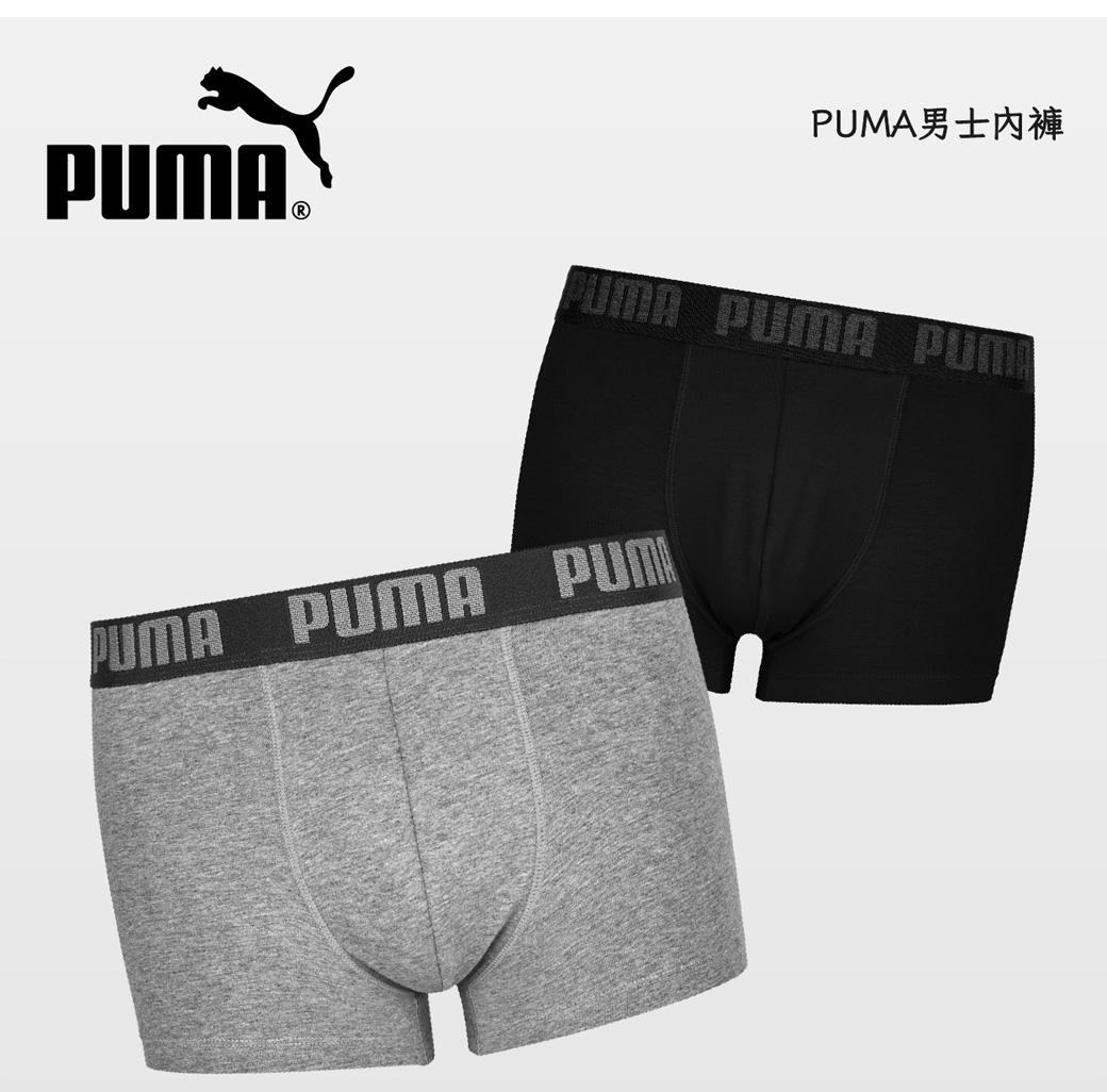 PUMA 平口內褲 1件組 彪馬 跳豹 男內褲 平角內褲 修身 防捲邊 貼合 耐穿 柔軟 棉質 排汗 透氣 抗菌 黑 灰