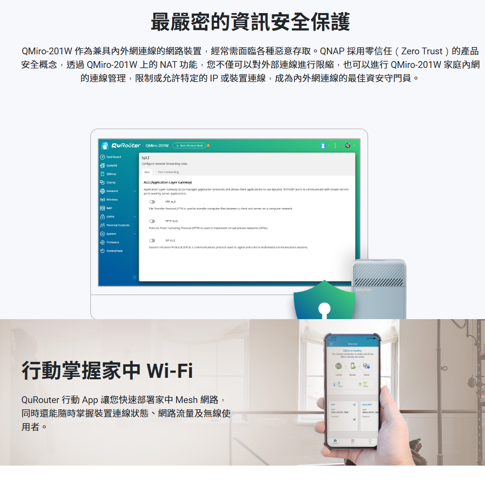 昌運監視器 QNAP 威聯通 QMiroplus-201W-TW 三頻 Wi-Fi Mesh AC2200 智能路由器