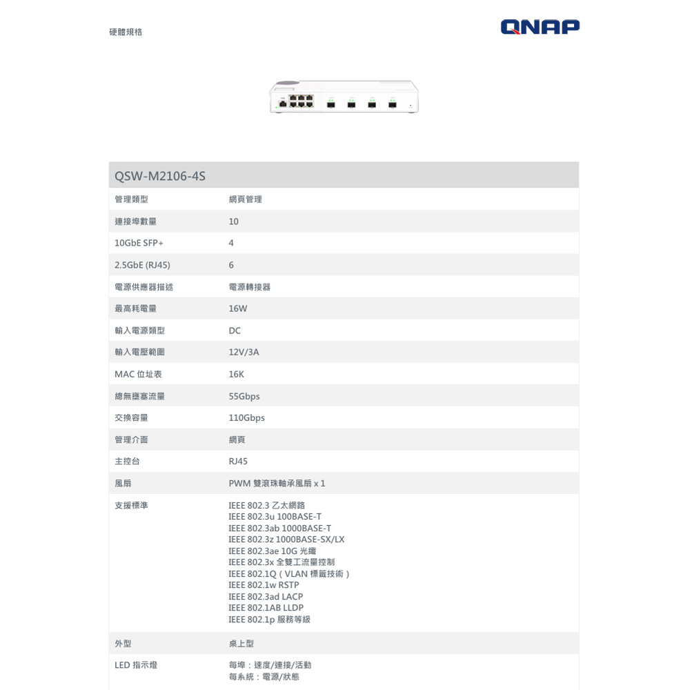 昌運監視器 QNAP 威聯通 QSW-M2106-4S L2 Web 網管型交換器 (4個10GbE SFP+埠及6個2.5GbE 乙太網路埠)