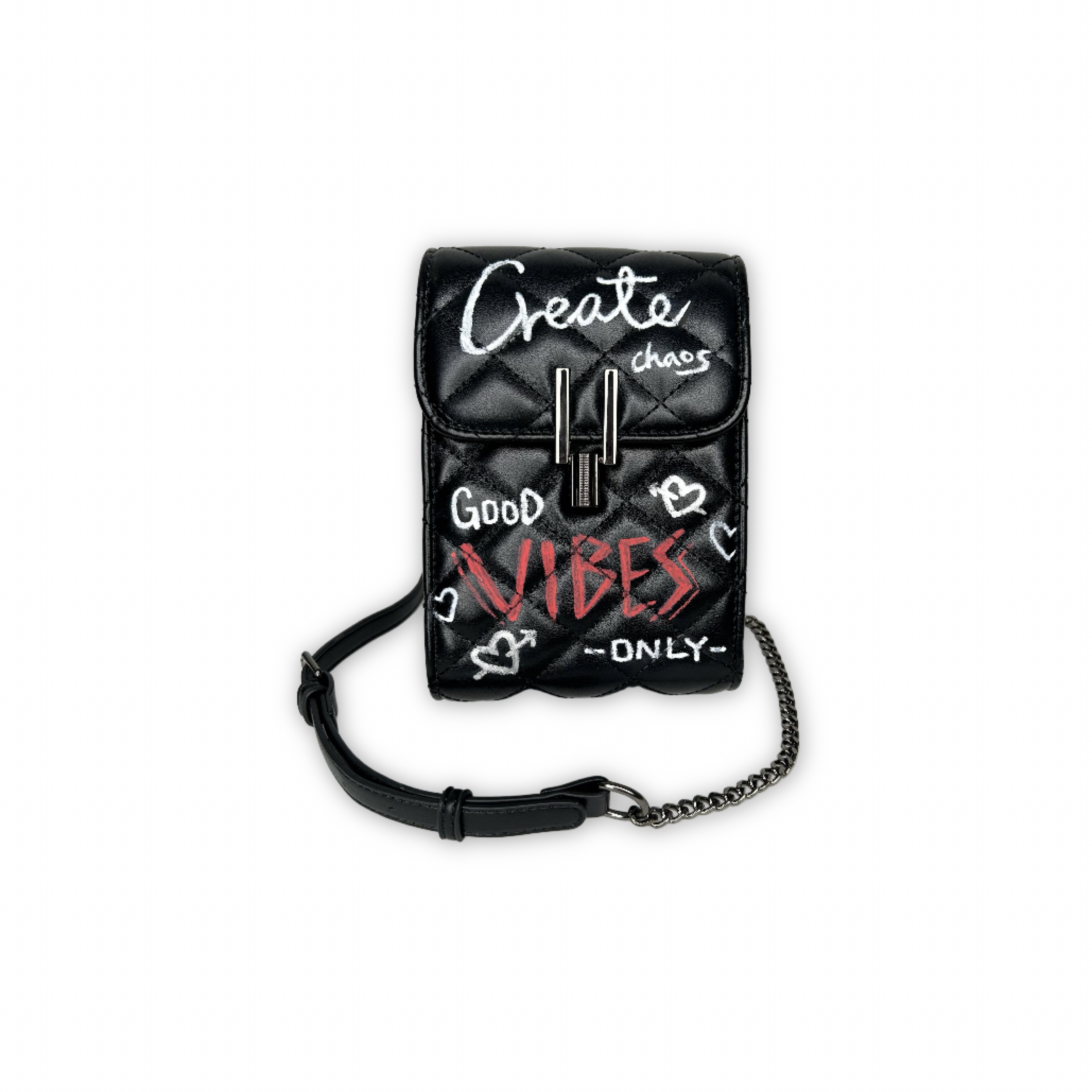手繪紅黑兩色塗鴉手機包黑色(S)