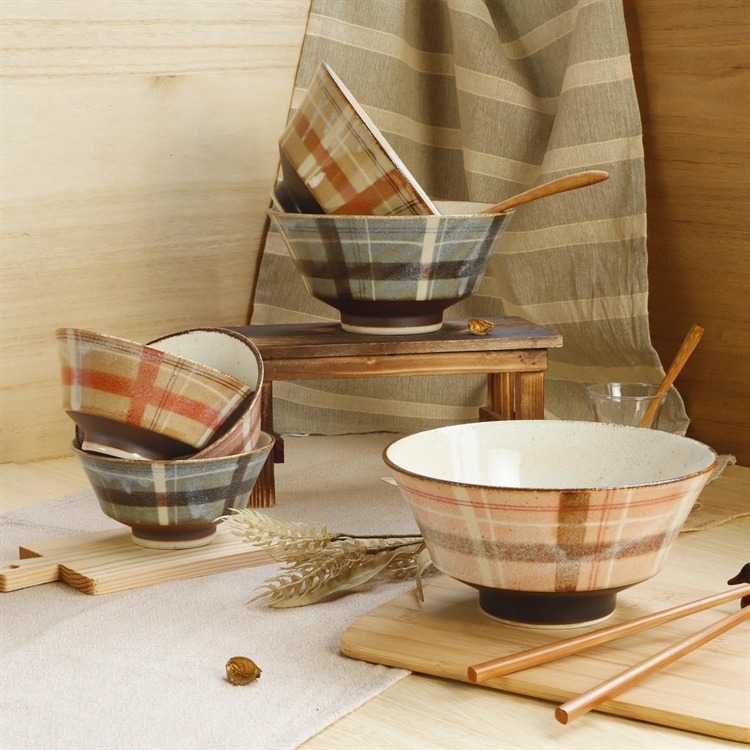 【毓秀堂】AWASAKA RACHE格紋飯碗(米 花生醬)